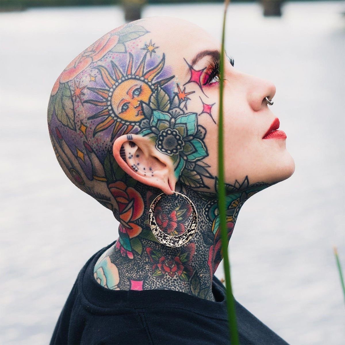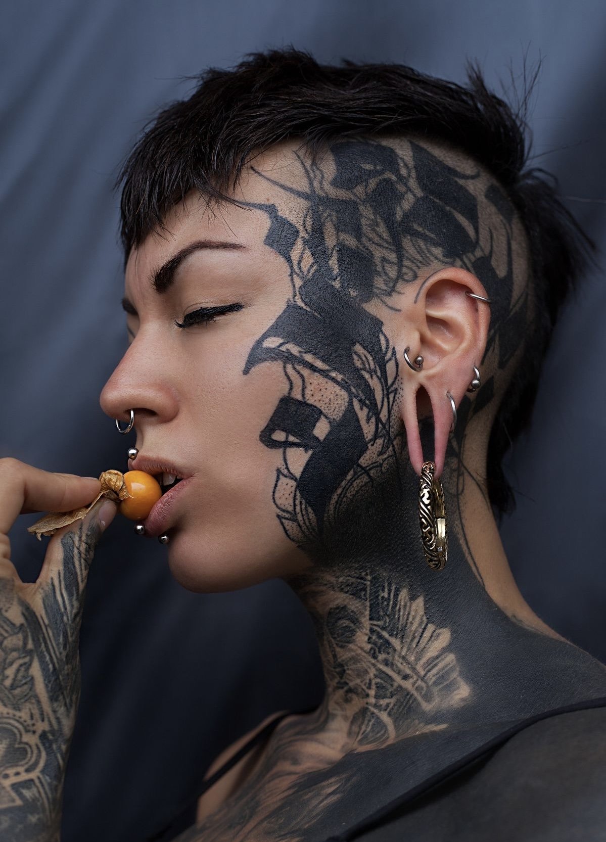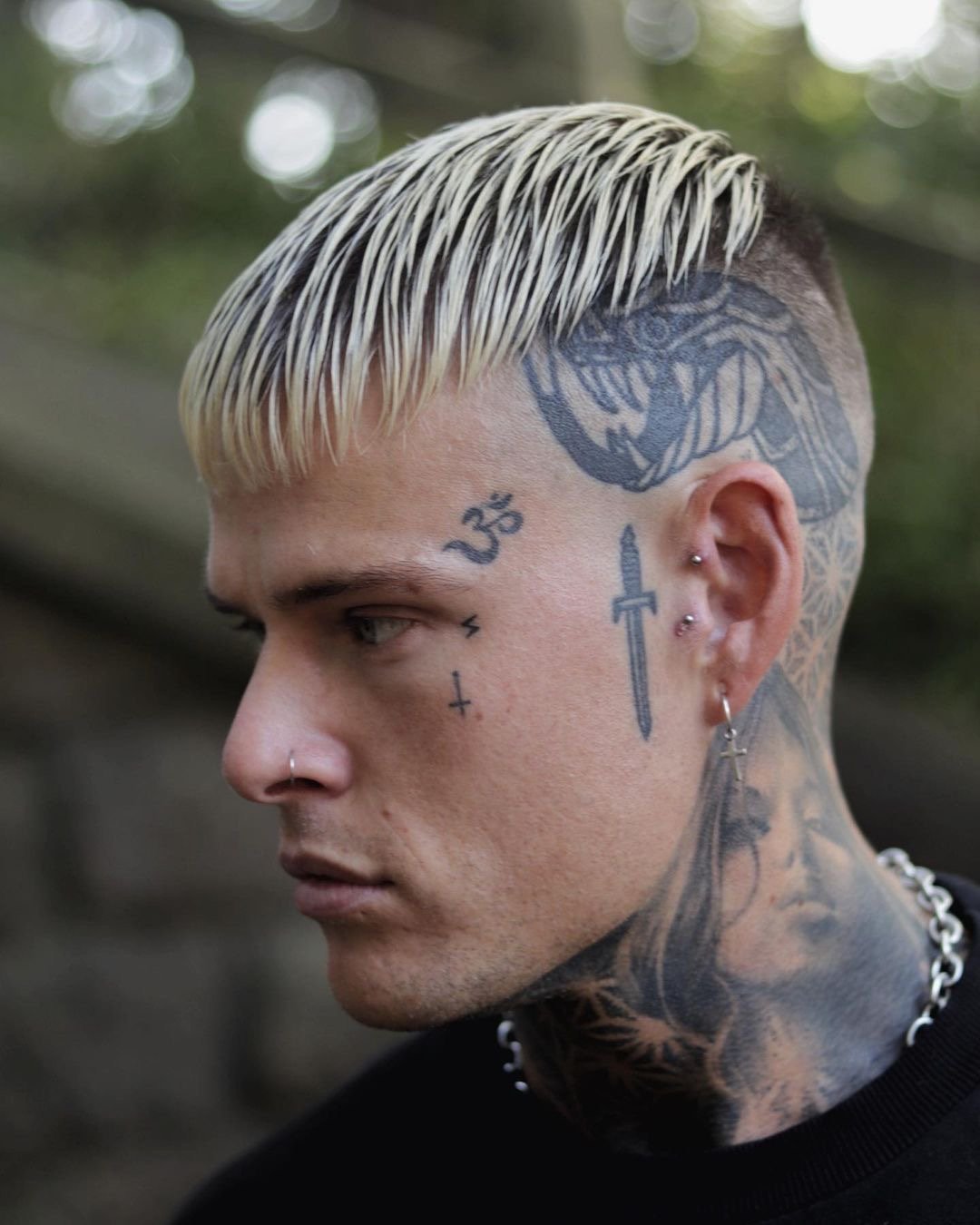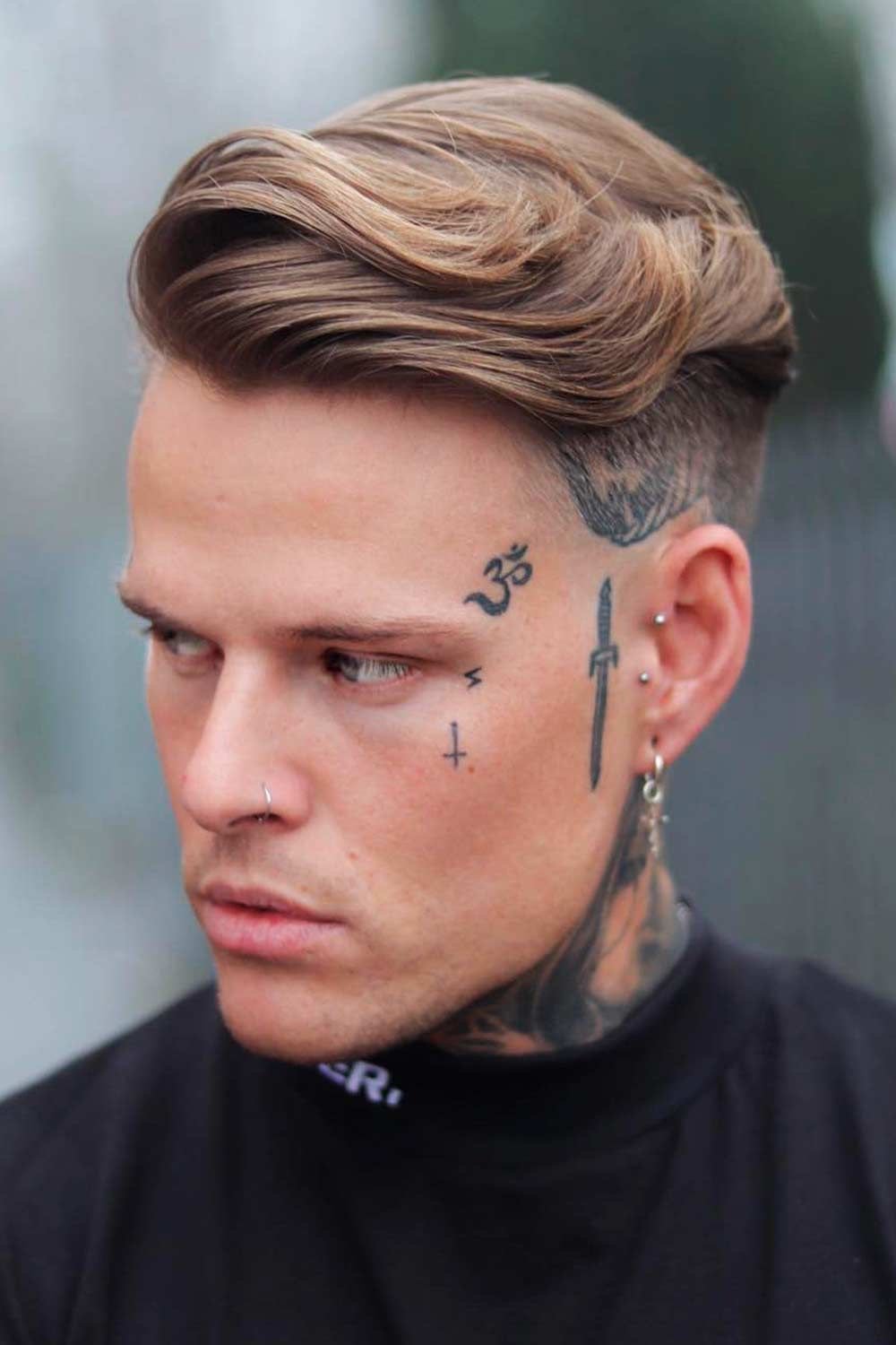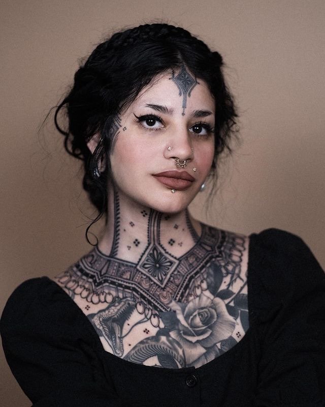 Klasszikus megoldás, amely jól illeszkedik az arctetoválásokhoz.