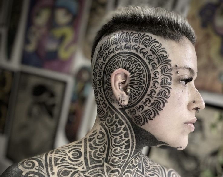 - Az arc-testművészet hagyományos gyakorlat a világ számos kultúrájában, beleértve az indián törzseket és a szamoai népeket is. Egyes motívumok a moko és maori hagyományokra utalnak. Tetoválásaik elmesélhetik a társadalmi státuszt, egy személy életének részleteit és eredményeit. A modern törzsi tetoválások azonban szabadabban értelmezhetők. Ez a stílus nagyszámú részlet és minta alkalmazását foglalja magában. És a teljes összetétel az arc nagy részét lefedi. Az önkifejezés exkluzív módja, amely sok bátorságot igényel.