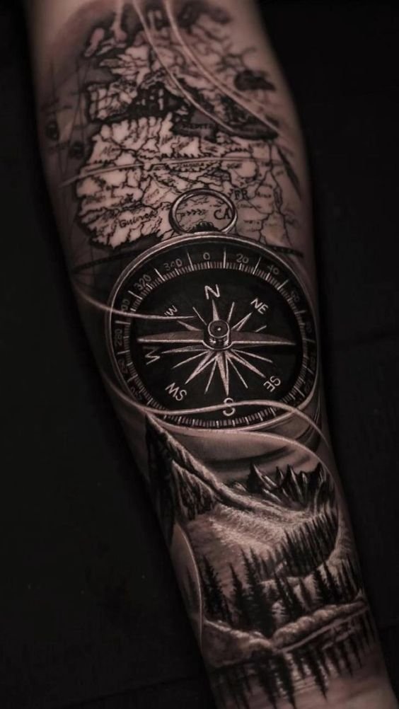 Nem kevésbé népszerűek az iránytű, a hajó, a horgony, az óra és az erdő változatai. Ezeknek a tetoválásoknak a mély jelentése közös - a saját út keresése, a cél felé való mozgás és a kaland szeretete, bár minden egyes képnek megvan a maga további jelentése.