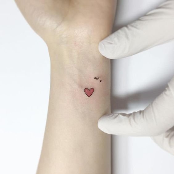 Egy vázlat, amely szív rajzolása érzékeny és hűséges lányok formájában van. Ez a rajz a legjobb megoldás egy kicsi és finom tetoválás.