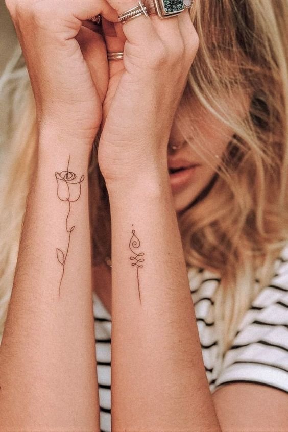 A végtelenség szimbóluma a csuklón jelzi az érzések folytonosságát, a változatlanságot vagy a tökéletességet. A végtelenséget gyakran más figurákkal vagy feliratokkal kombinálják. Ezek lehetnek egyedi betűk, dőlt betűvel vagy teljes mondatokban írt szavak, amelyek különleges jelentést tartalmaznak.