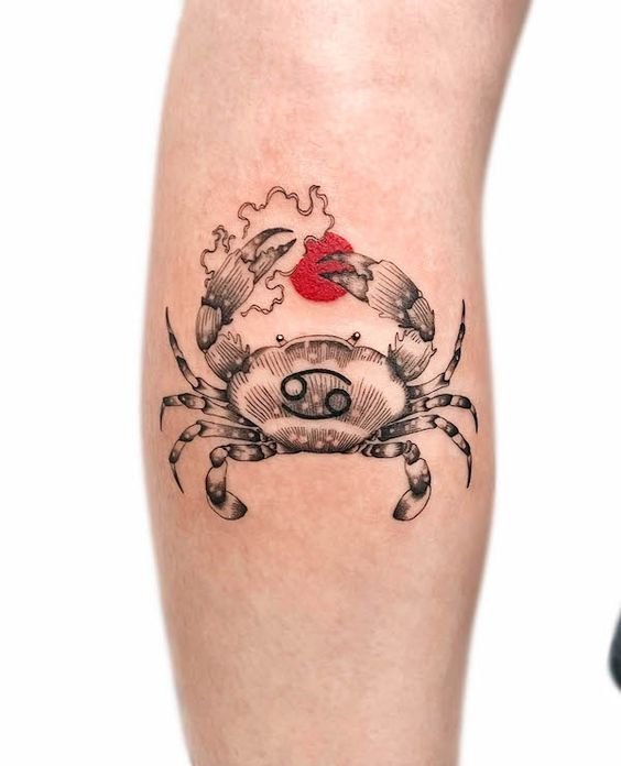 Ennek a tetoválásnak a hagyományos szimbólumai, nevezetesen a rák különböző képei további elemekkel kombinálva, stílusosan néznek ki a test bármely részén.