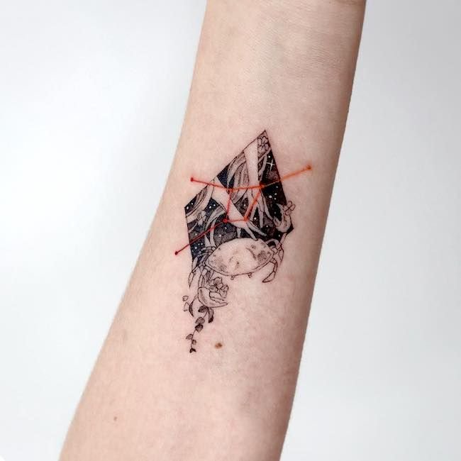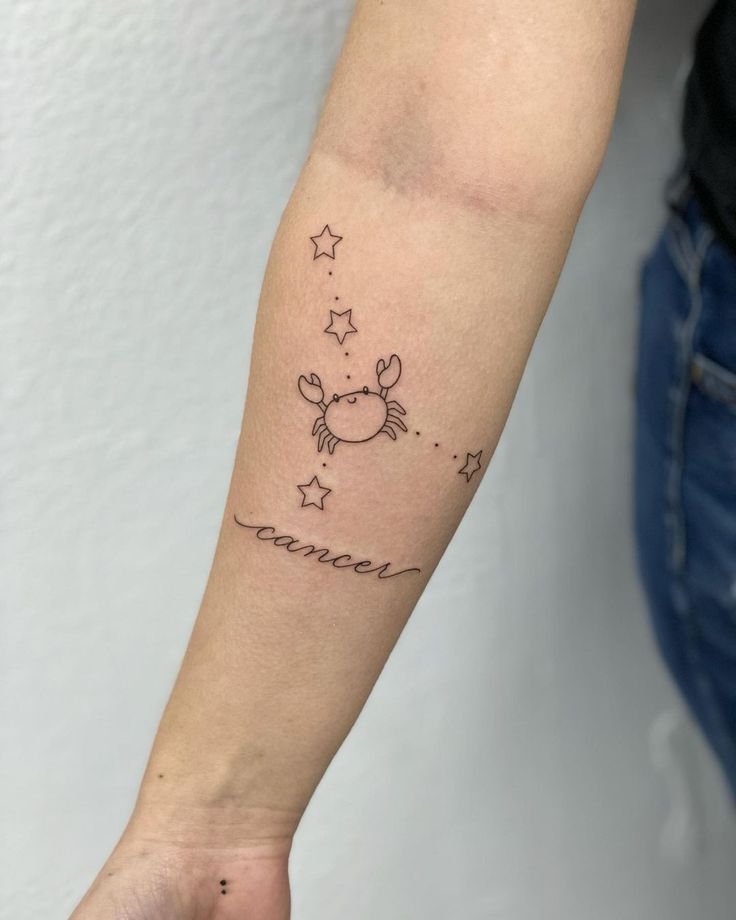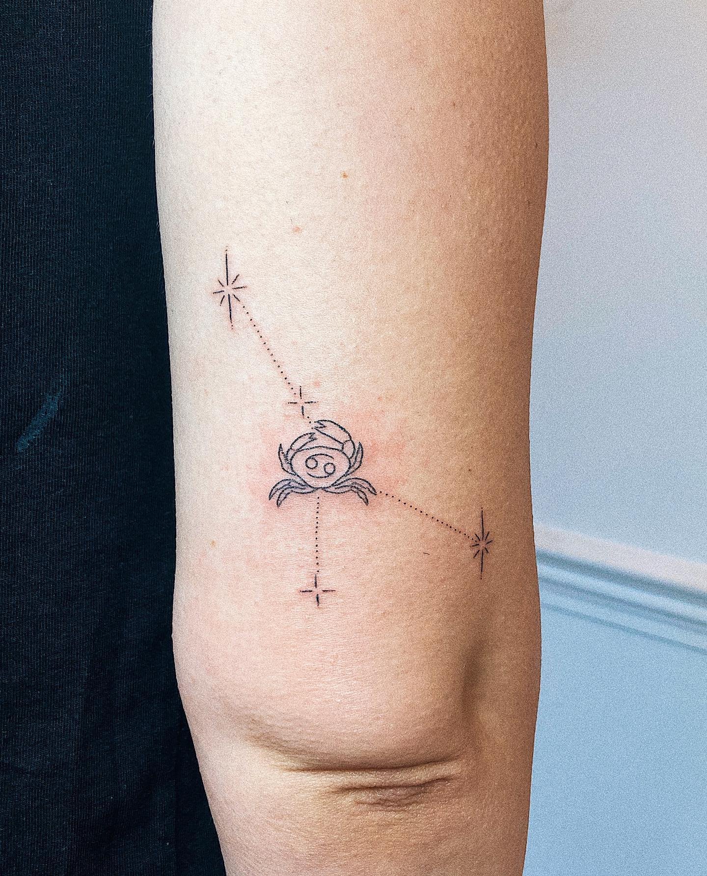 - Csukló: a Rák állatöv tetoválás, és különösen a Rák csillagkép tetoválás ezen a testrészen nagyon elegánsnak tűnik. Nem meglepő, hogy a nők gyakran választják a csuklót a minimalista és miniatűr állatöv vázlatokhoz;