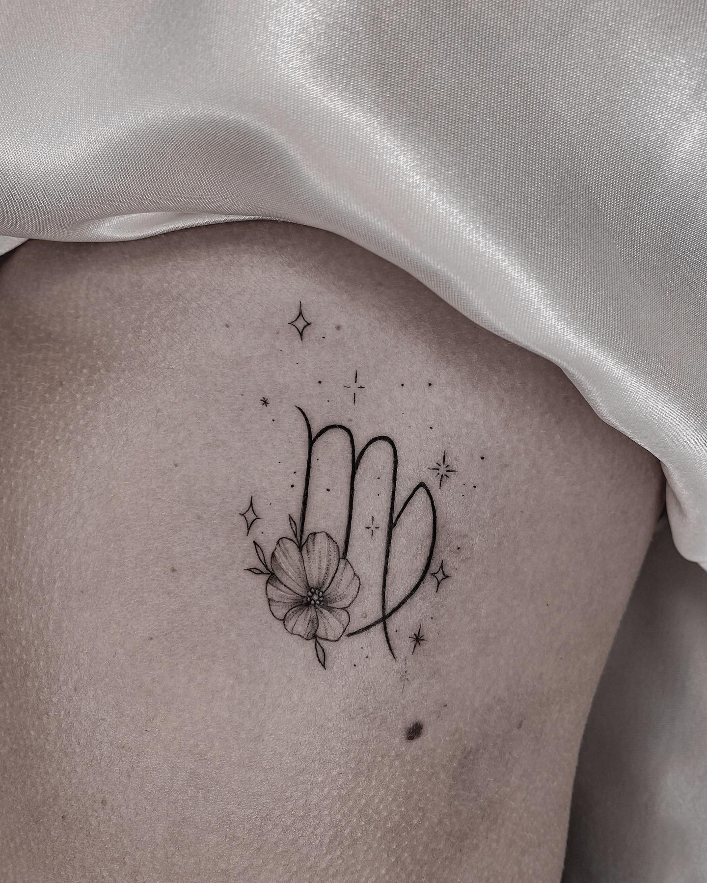A minimalista tetoválásokhoz a mesterek azt tanácsolják, hogy válasszák a Szűz állatöv jelű tetoválást a bordákon és a derékon.