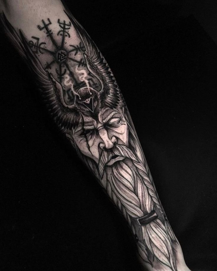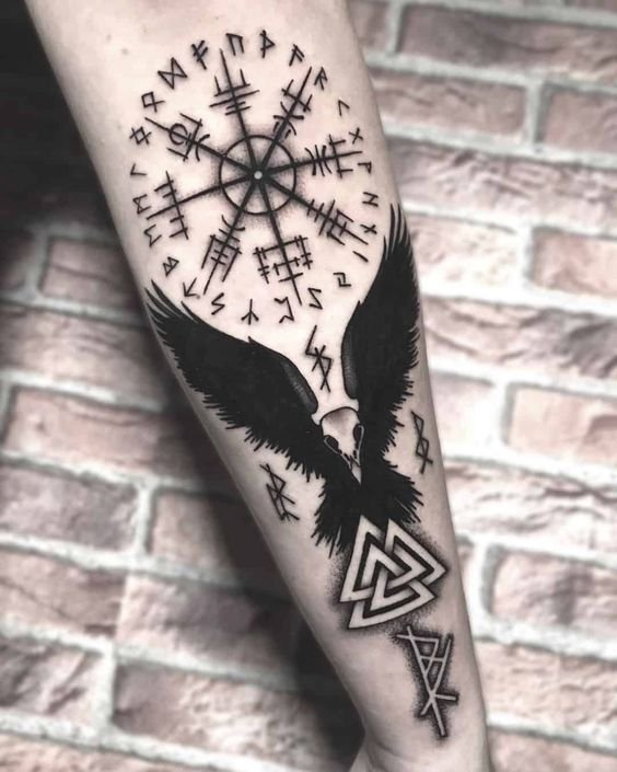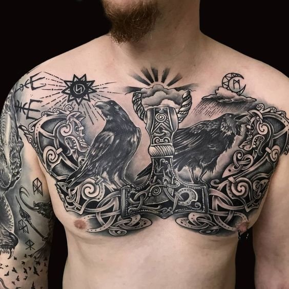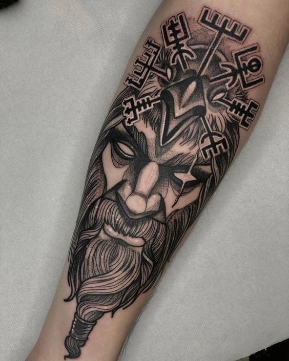 - A hagyományos skandináv tetoválások – istenek képei és az állatvilág képviselői. Ezenkívül találhatunk a viking témához hasonló képeket, például: egy vitorlás képe, tele nagy harcosokkal.