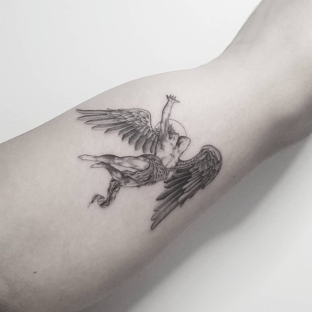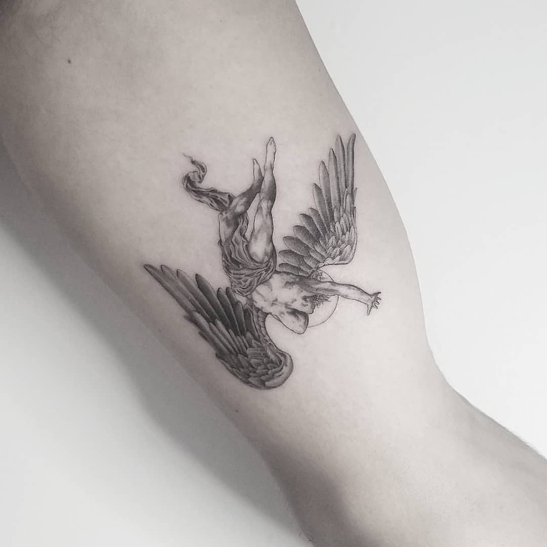 A bukott angyalok olyan lények, akiket kiűztek a Paradicsomból. Ha ezt a vázlatot választja tetováláshoz, az ember azt mondja, hogy a múltban olyan hibát követett el, amely elvett tőle valami fontosat.