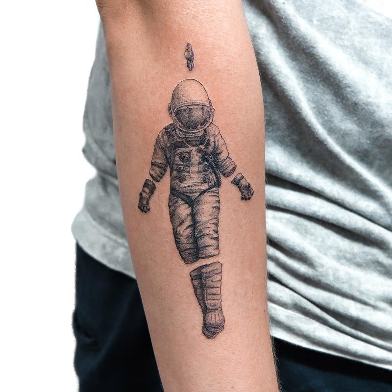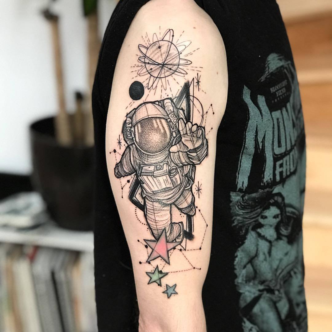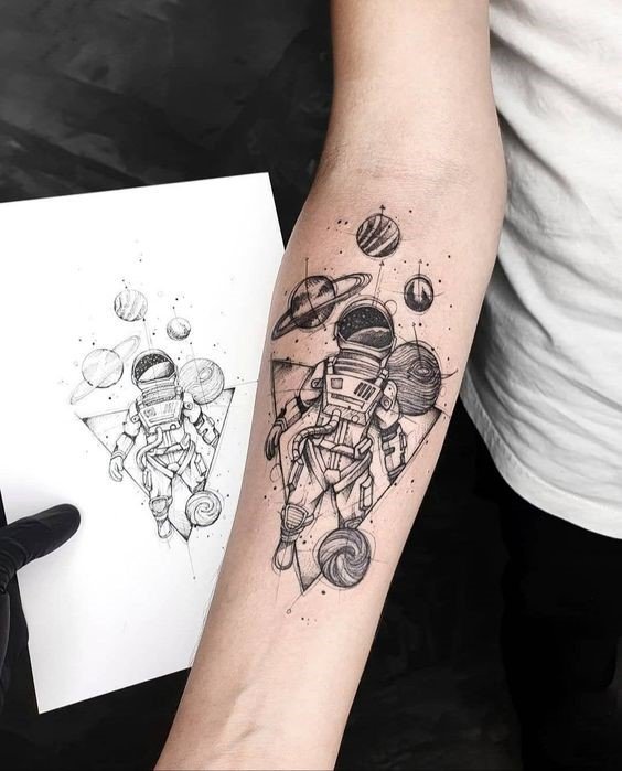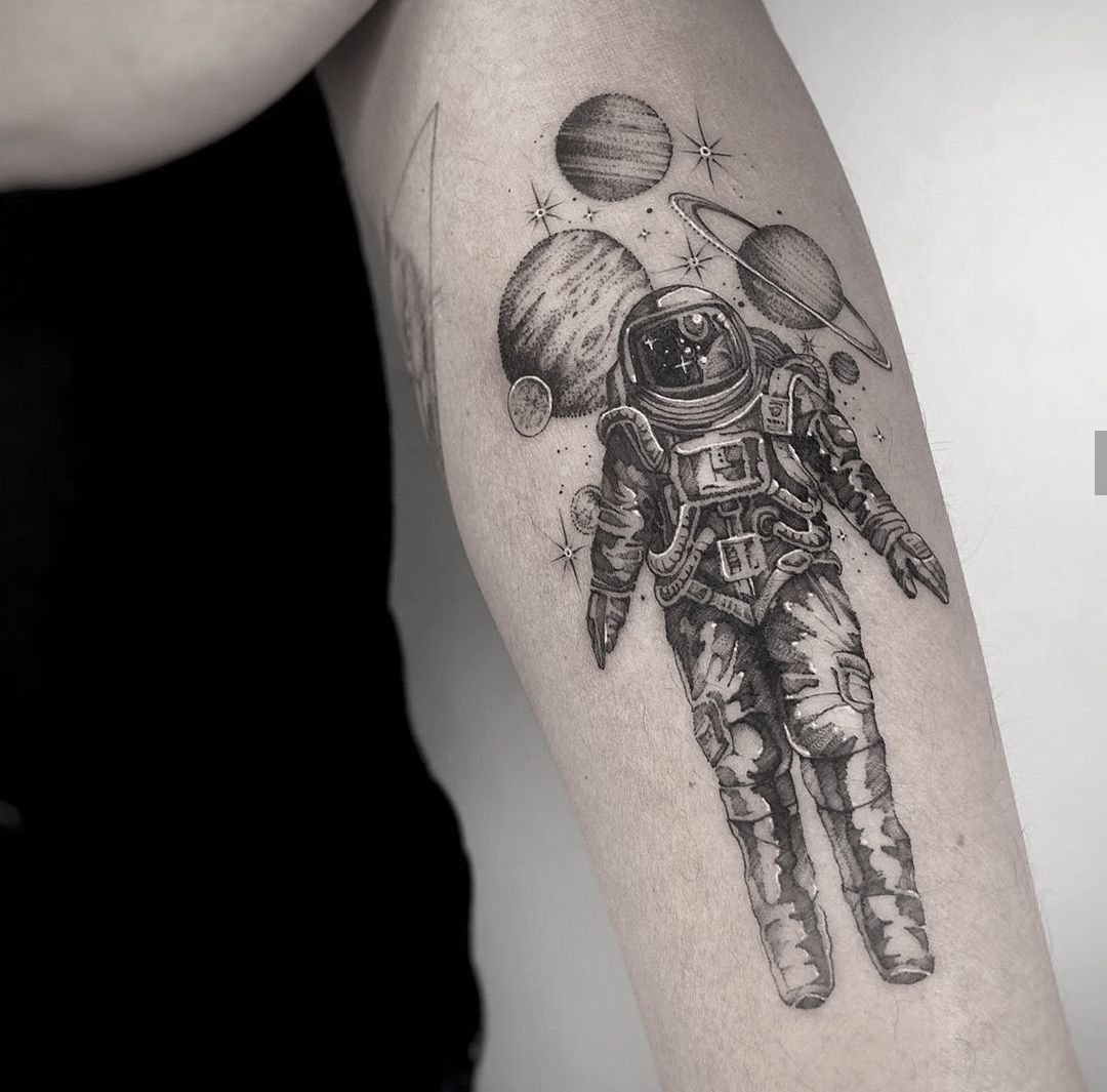 Egyik vonzó tetoválási lehetőség az asztronauta vagy űrhajós alakú minta.