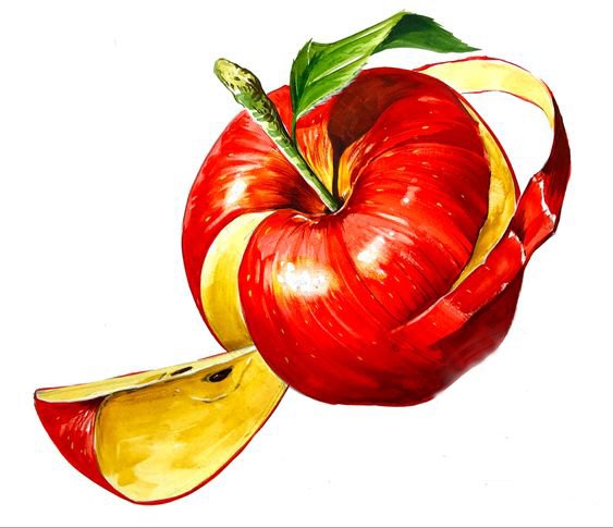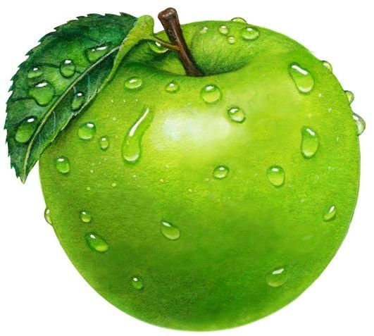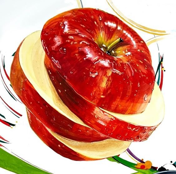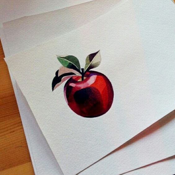 Akvarell, lenyűgöző stílus, tele könnyedséggel és légiességgel. Az ilyen stílusú alma képét festékfoltok vagy többszínű fröccsenések egészíthetik ki.
