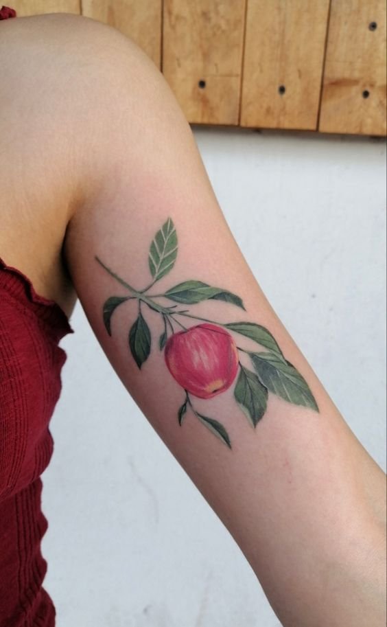 A realizmus univerzális stílus, egy alma a testén valódinak fog kinézni, és ez nem csak egy kép. Az alma különösen valósághű képét apró részletek teszik ki, mint például a harmatcseppek, egy lédús kiemelés, amely az alma ízét közvetíti. Érdemes azonban elmondani, hogy az ilyen stílusú tetoválás meglehetősen gondos munka, amely speciális ismereteket és jelentős tapasztalatot igényel.