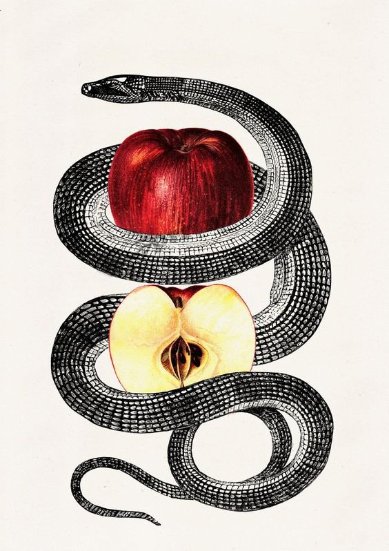 - Az alma kígyóval a kísértés szimbóluma.