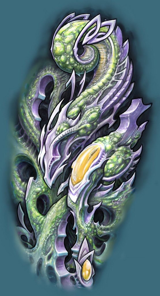 A "Bioorganic" stílus nagyon érdekes, vonzó, eredeti, és mindig látványosan néz ki. Ha ilyen stílusú tetoválást választ, akkor biztosan nem marad mások és a járókelők figyelme nélkül.
