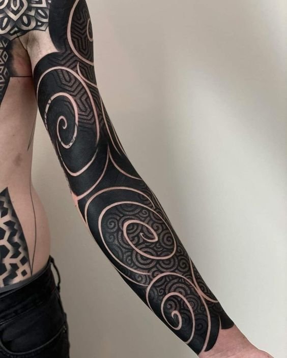 A tetoválások, amelyeken a blackwork stílust egy másik stílussal kombinálják, eredetinek tűnnek.
