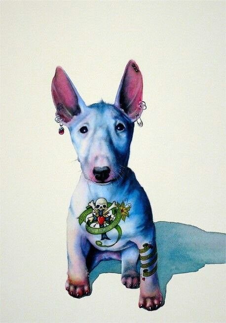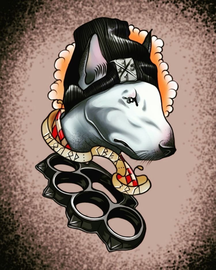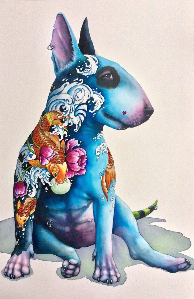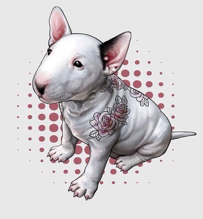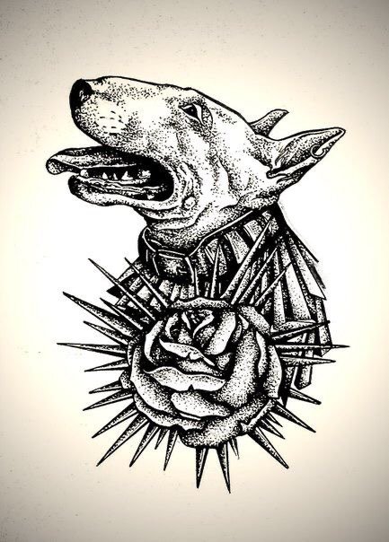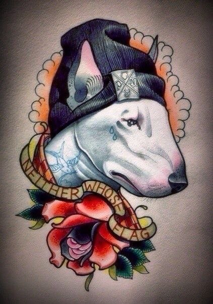 - Ingerlékenység. Ha egy bullterriert egy tetováláson féktelen állapotban ábrázolnak, ez a kép a tetoválás tulajdonosát féktelen és gyors indulatú emberként jellemzi.