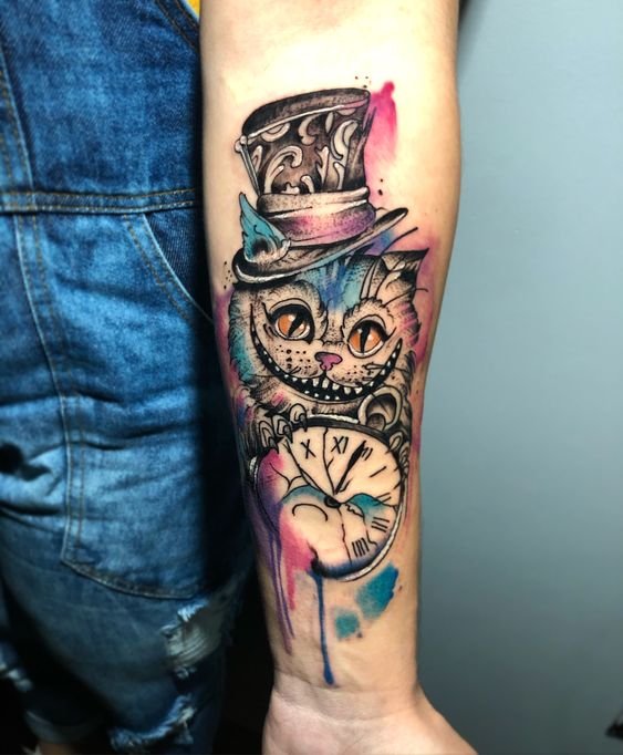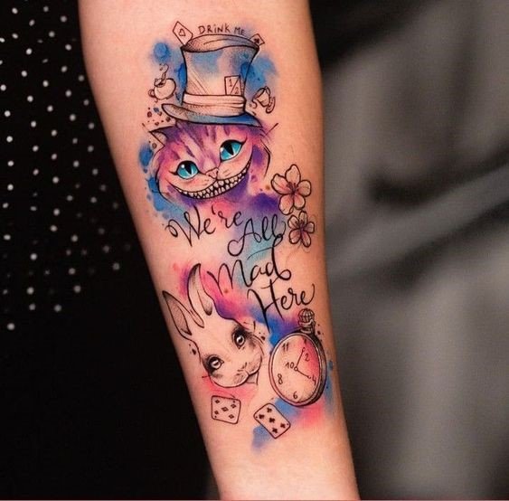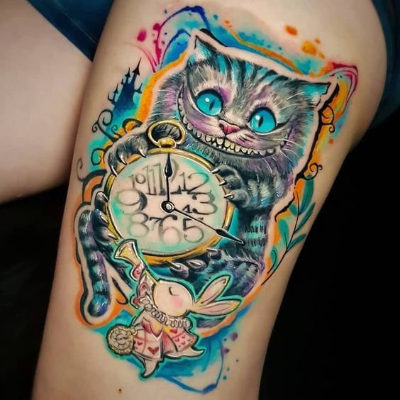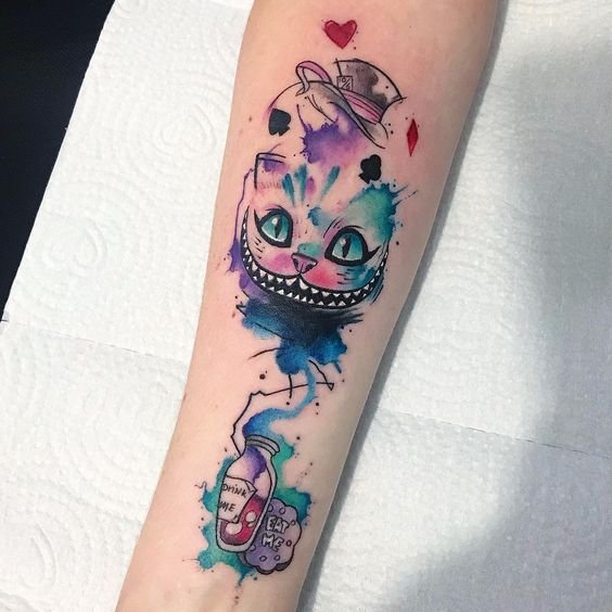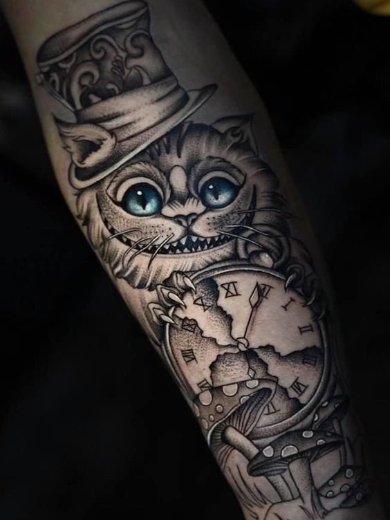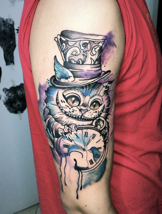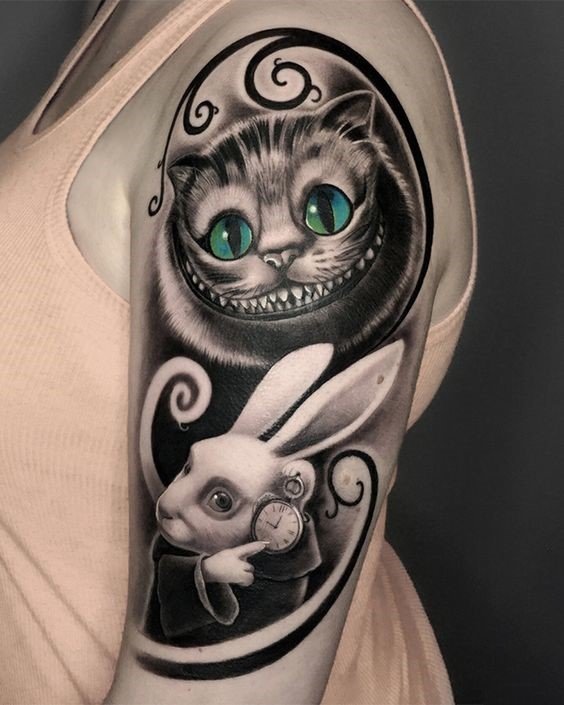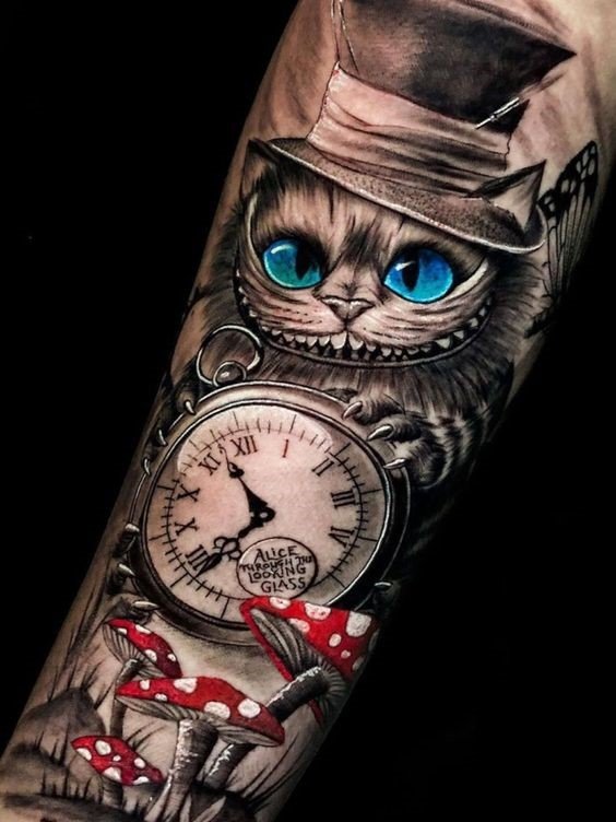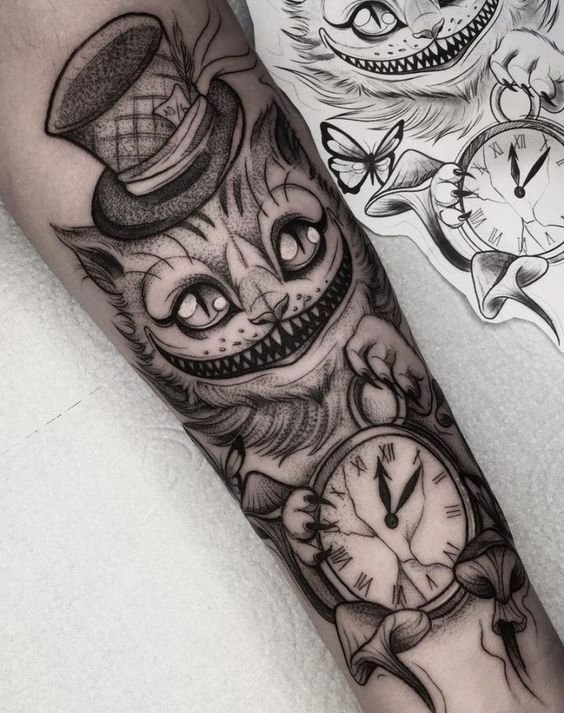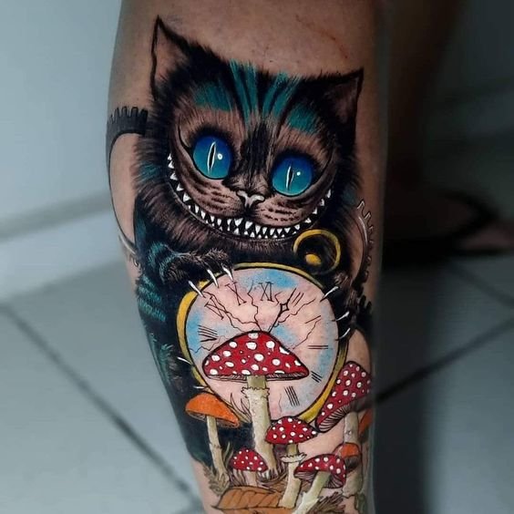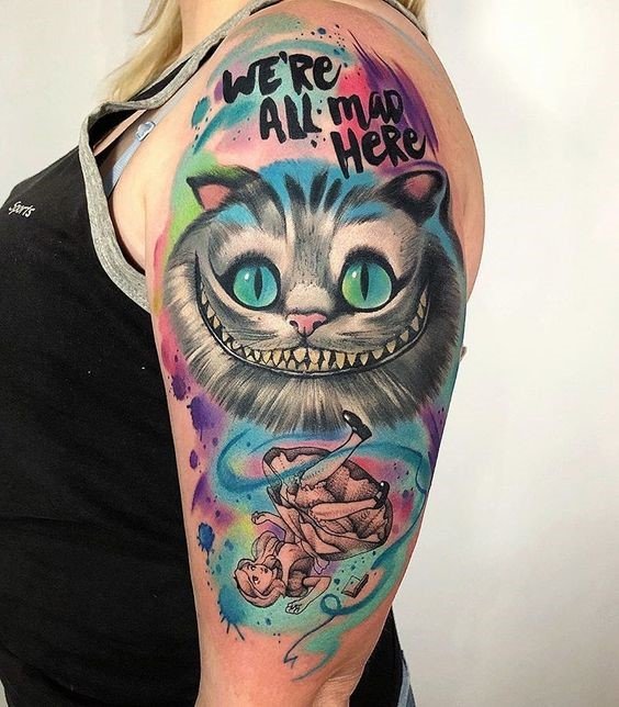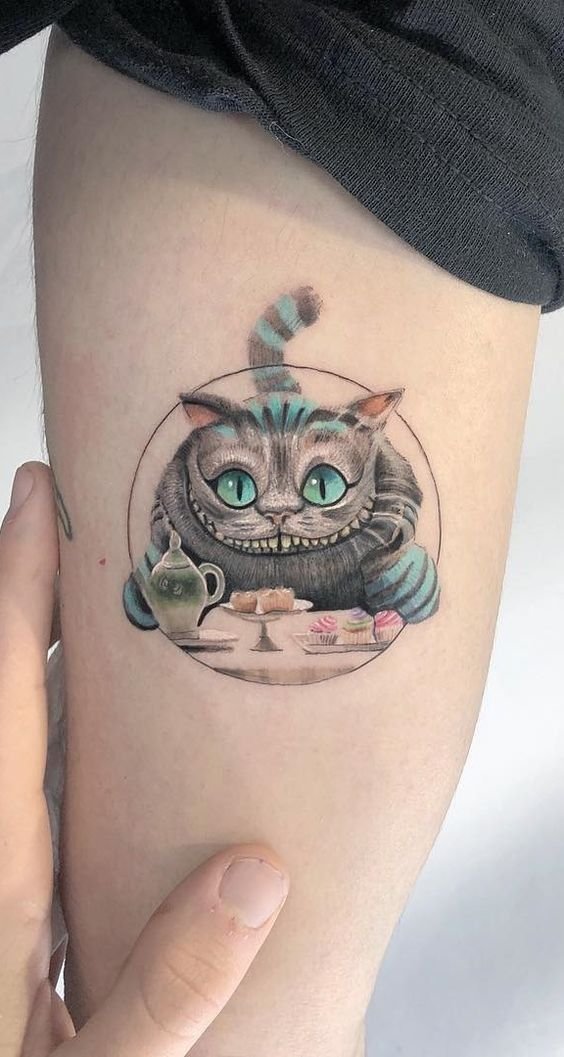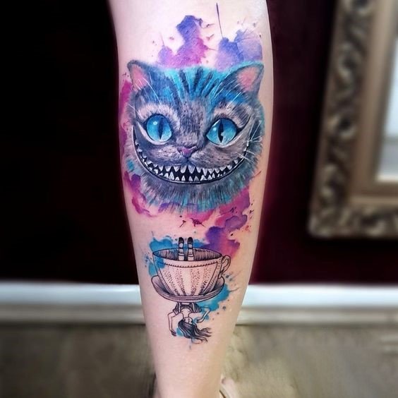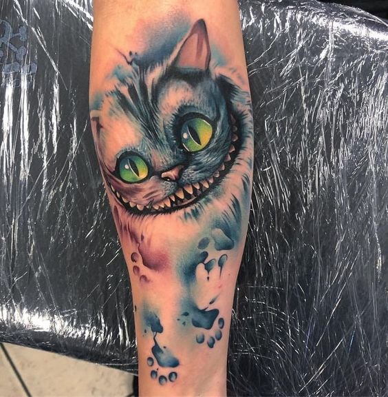 Lewis könyve Alice csodálatos utazásáról mesél egy csodálatos országban, amely tele van rejtélyekkel, csodálatos dolgokkal és szokatlan lakókkal. Ebből a könyvből megismerhettük a szokatlan, titokzatos Cheshire macskát, aki széles mosolyával mindenkit meghódított. Ebben a történetben Cheshire egy filozófus szerepét játssza, egy pozitívan mosolygó macska, aki akkor tud megjelenni és eltűnni, amikor csak akar, és csak egy mosolyt hagy maga után. Tudniillik a könyv alapján forgatták az azonos nevű filmet és rajzfilmet, melyben a Cheshire Cat a legszembetűnőbb karakter. Ilyen népszerűség után egyáltalán nem meglepő, hogy ez a macska elérte a tetoválás művészetét, és nagy rá a kereslet.