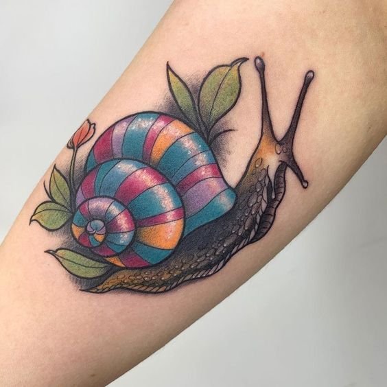 Leggyakrabban a csigatetoválásokat élénk színekkel ábrázolják, de ugyanolyan ritka a fekete-fehér tetoválás. Szintén gyakori vázlat egy csiga a rajzfilm műfajában, ami a tetoválást még világosabbá és vonzóbbá teszi.
