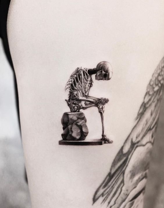 Szokatlan jelentése van a csontváz tetoválásnak is, amely alkimistáktól érkezett hozzánk. Az alkimisták úgy vélték, hogy a csontváz az emberi test újjászületésének egyik formája, amikor a test megszabadul a régi héjtól, új megjelenést nyerve.