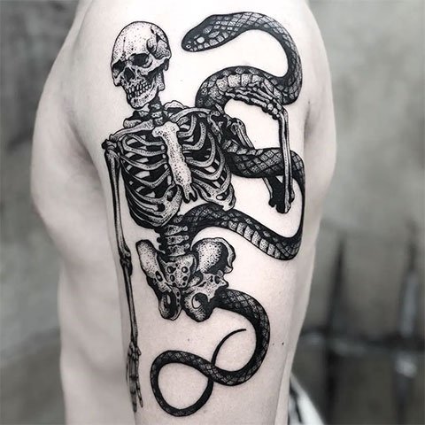 Az egyik ilyen tetoválás egy csontváz képe. Azok az emberek, akiknek testét csontok vagy egy egész csontváz képe díszíti, kétértelmű gondolatokat ébresztenek a körülöttük élőkben. Egy ilyen tetoválás mindig vonzza az összes járókelő figyelmét. Az első dolog, ami eszedbe jut egy csontváz tetoválás láttán, az a miszticizmus, az ördög, a sötétség, a halál. De ez a tetoválás egyáltalán nem visel ilyen komor megjelölést. Sokan az emberi testen lévő csontváz képét valami negatívnak, sötétnek, misztikusnak tartják. Ezek régen elavult fogalmak, amelyek az idők során elvesztették kötődésüket a csontvázhoz. Elég furcsa, de a csontváz tetoválási vázlata pozitív jelentést hordoz, amelyben egyáltalán nincs helye a halálnak.