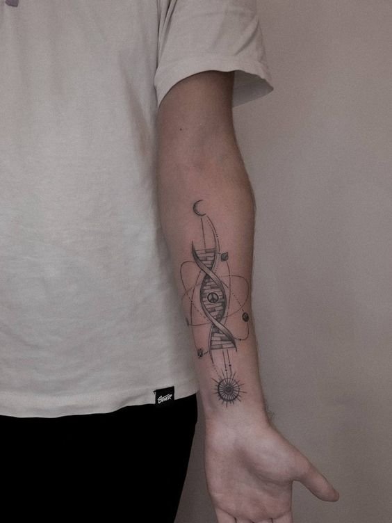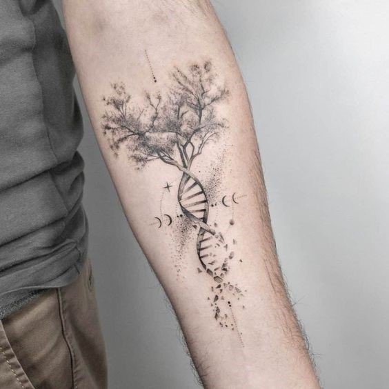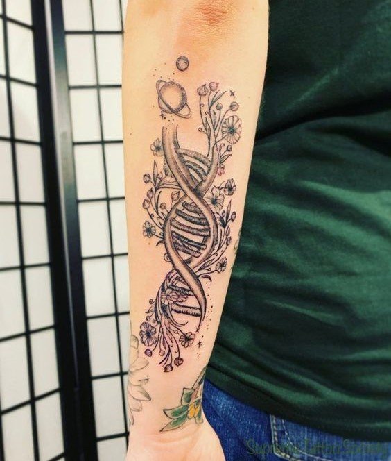 Maga a DNS-spirál a haladás, a tudomány, mint olyan fejlődésének szimbóluma. A DNS felfedezése fontos pillanat volt a tudomány történetében, ami egy sor további felfedezéshez és újításhoz vezetett. A spirál önmagában is érdekes és vonzza a figyelmet, a lényeg, hogy más elemek hozzáadásával változtatható, világosabbá, színesebbé téve. A tetoválás lényege nem változik, de a láthatóság a hasznodra fog játszani.
