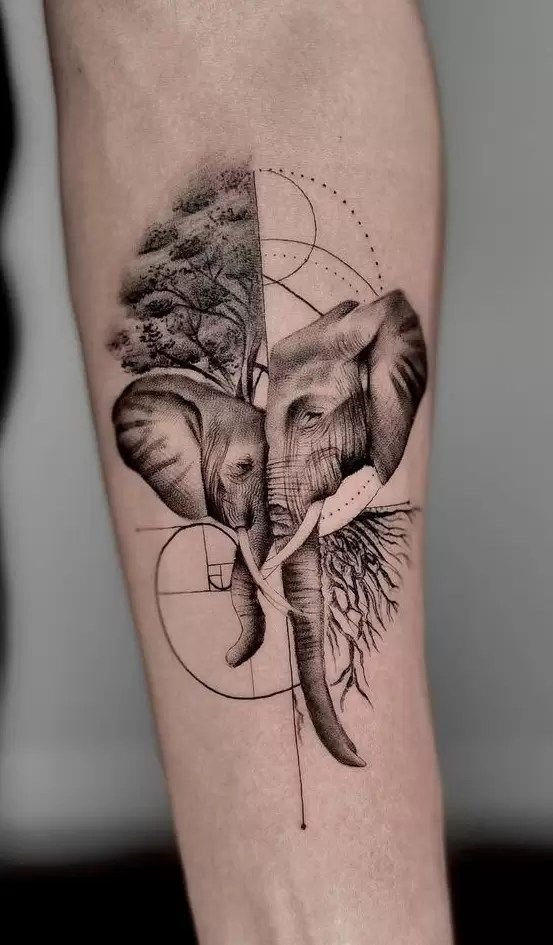 Afrikai országok és Ázsia központi része, ezekből az országokból származik az elefánt képével ellátott tetoválás. Ezek a népek úgy vélik, hogy az elefánt a hűséget, a békét, a magabiztosságot, az odaadást és a hatalmat képviseli. Az elefántot nagy becsben tartják számukra, mert kitartása és rendkívüli ereje van. A buddhisták számára az elefánt viselhető képe spirituális tudást, állandóságot és belső energiát jelöl. A középkori Európában az elefánt képe aszkézist és tisztaságot jelentett. Ez az értelmezés annak a ténynek köszönhető, hogy a terhesség alatt a nőstény elefánt nem érintkezik az ellenkező nemmel. Ez a szexuális élettől való tartózkodás tizennyolc hónapig tart. Az ókori Rómában az elefánt a bölcsességet és a győzelmet képviselte. Amikor a birodalom bukott, a keresztény vallás egy elefántot ábrázolt, amint egy kígyót zúz össze a jó gonosz feletti győzelmének jeleként.