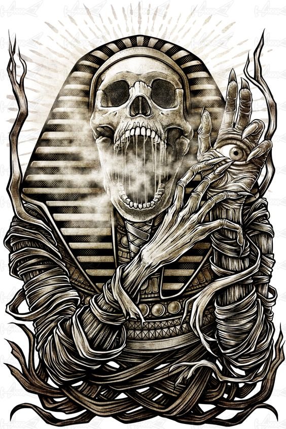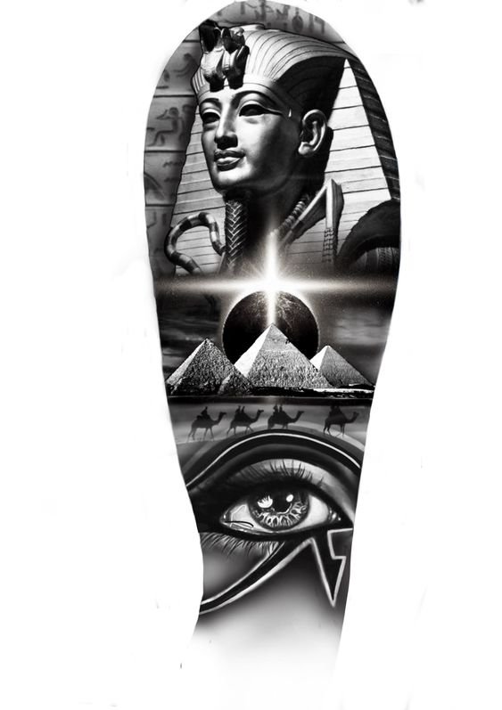Nagyon gyakran ezt a tetoválást az úgynevezett harmadik szemmel ábrázolják, ez szimbolizálja a megvilágosodást és a harmóniát a tulajdonos számára. A fáraó és a koponya vázlata is népszerű. Egy kép, amelyen az egyiptomiak félig koponyája félig fáraó a halál jelének számított, a múmiák a tetoválás kiegészítő elemeivé válhatnak.
