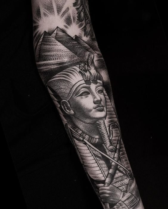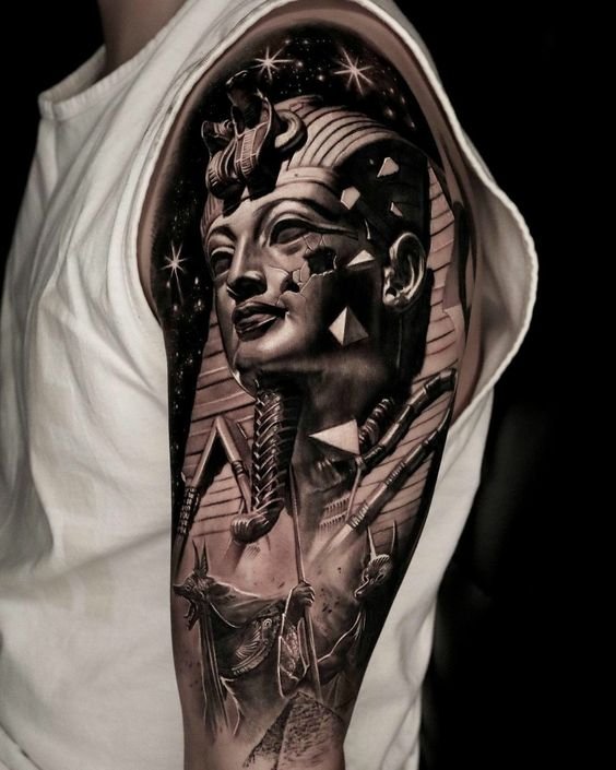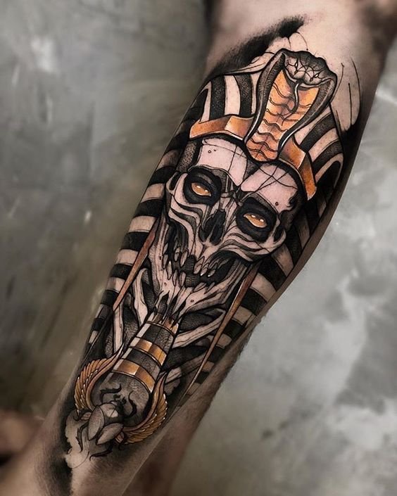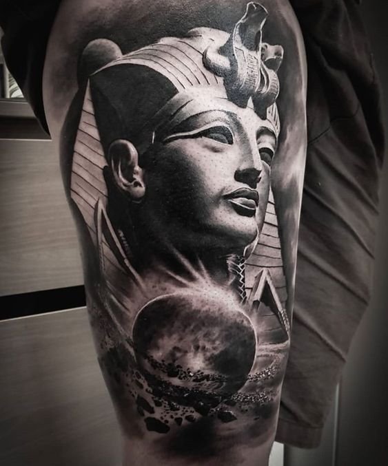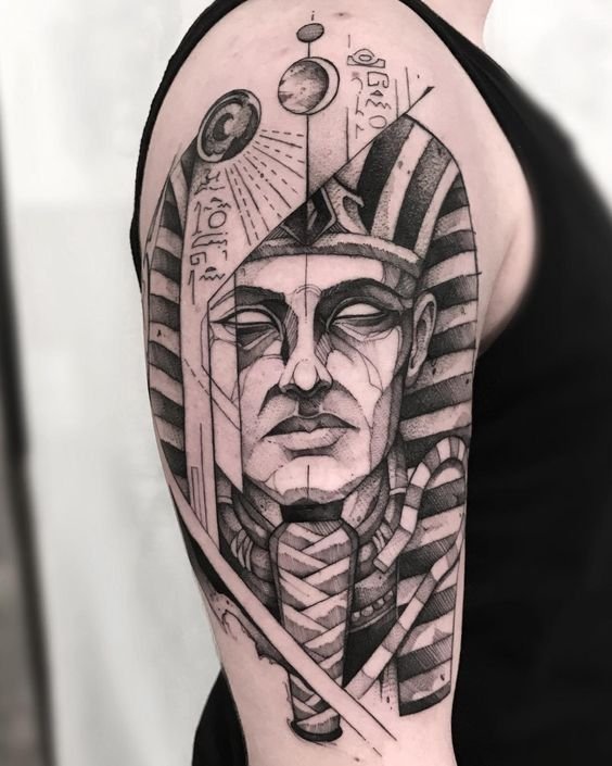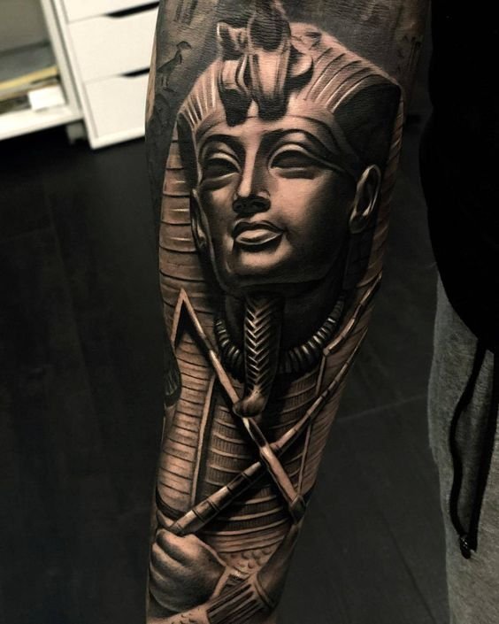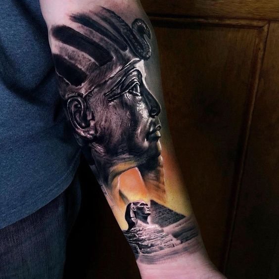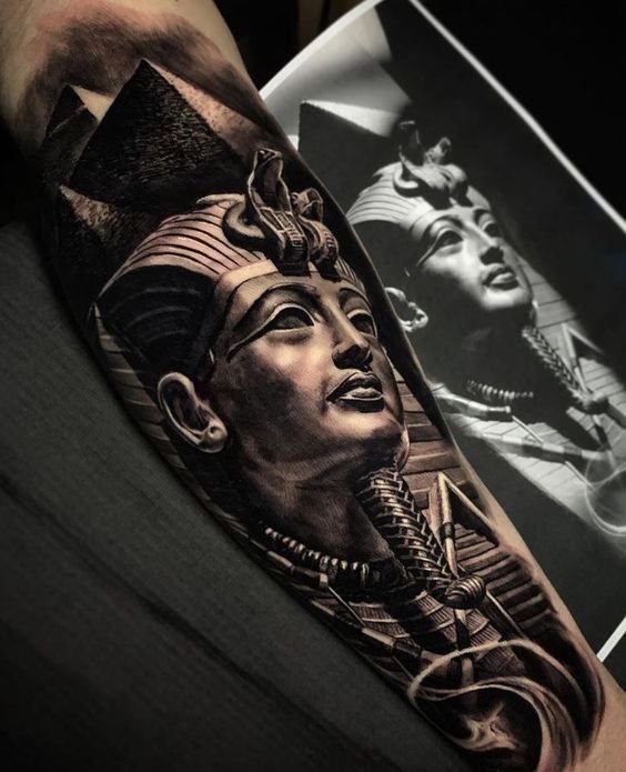 A klasszikus és leggyakoribb lehetőség a fáraó profilképe. Sok különböző tematikus elemet lehet hozzáadni ehhez a tetováláshoz, lehetnek piramisok, kígyók, állatok (gyakran ezek szent macskák). Ez a hordható kép színesben és fekete-fehérben is készül. A fáraó színes képe fényesnek és gazdagnak tűnik, ezáltal közvetíti az uralkodó minden fenségét. Ehhez a tetováláshoz olyan színeket használnak, mint a piros, zöld, sárga vagy kék.