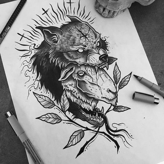 A fekete-fehér változatban gyakran megtalálhatók az állatvilág képviselőinek képei, általában egy ilyen tetoválás hasonló karakterjegyeket közvetít, hangsúlyozza a tetováláson ábrázolt állattal. Például a ragadozó állatok demonstrálják az ember céltudatosságát, készségét a cél bármi áron való elérésére.