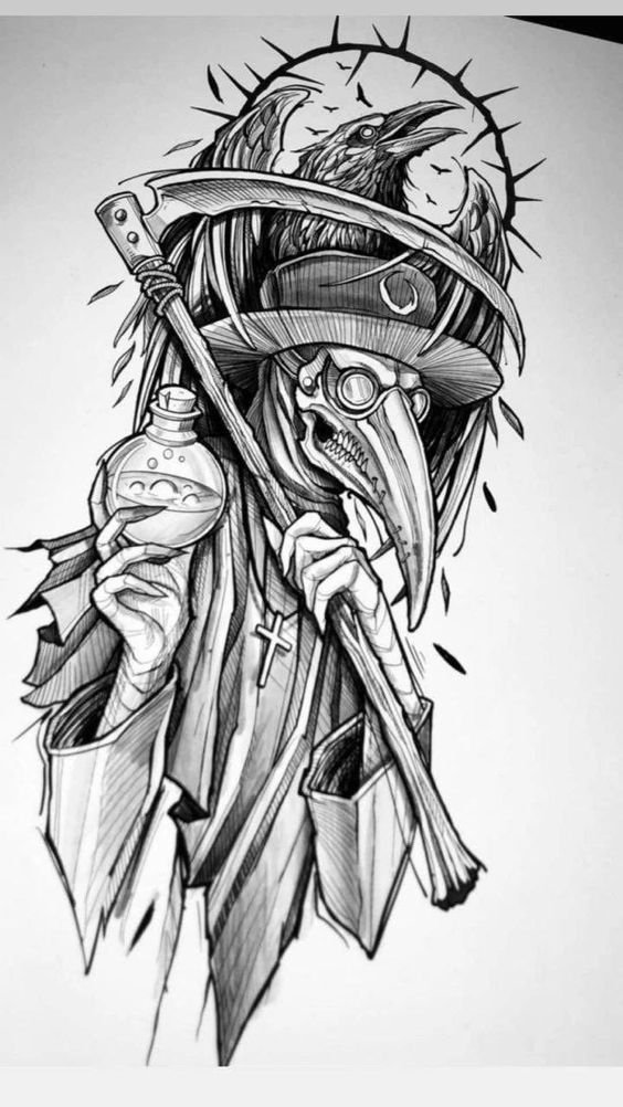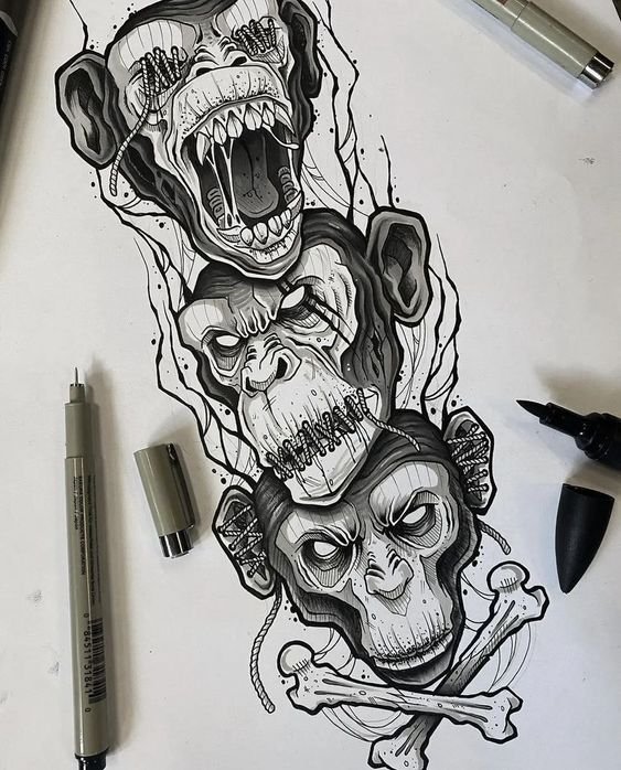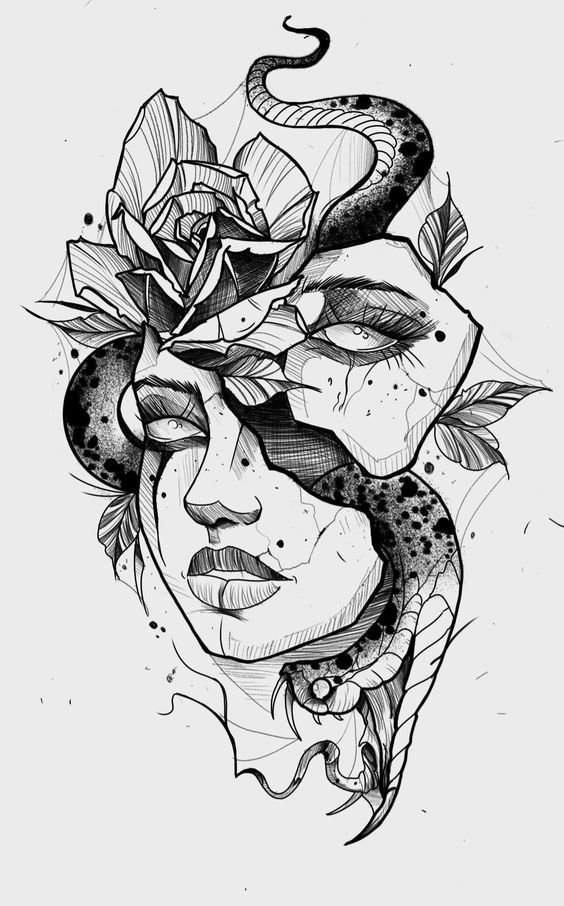 Fekete-fehér tetoválási vázlatok