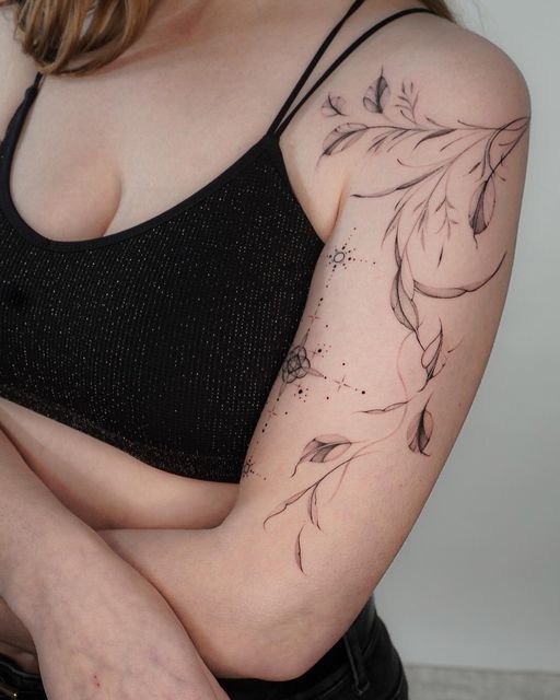 - Csillagképek. Az égi szféra területeinek minimalista ábrázolása a reményt és az univerzum végtelen lehetőségeit szimbolizálja. A testen lévő csillagképek törékenynek és önellátónak tűnnek, és jól illeszkednek más testdíszekhez is.