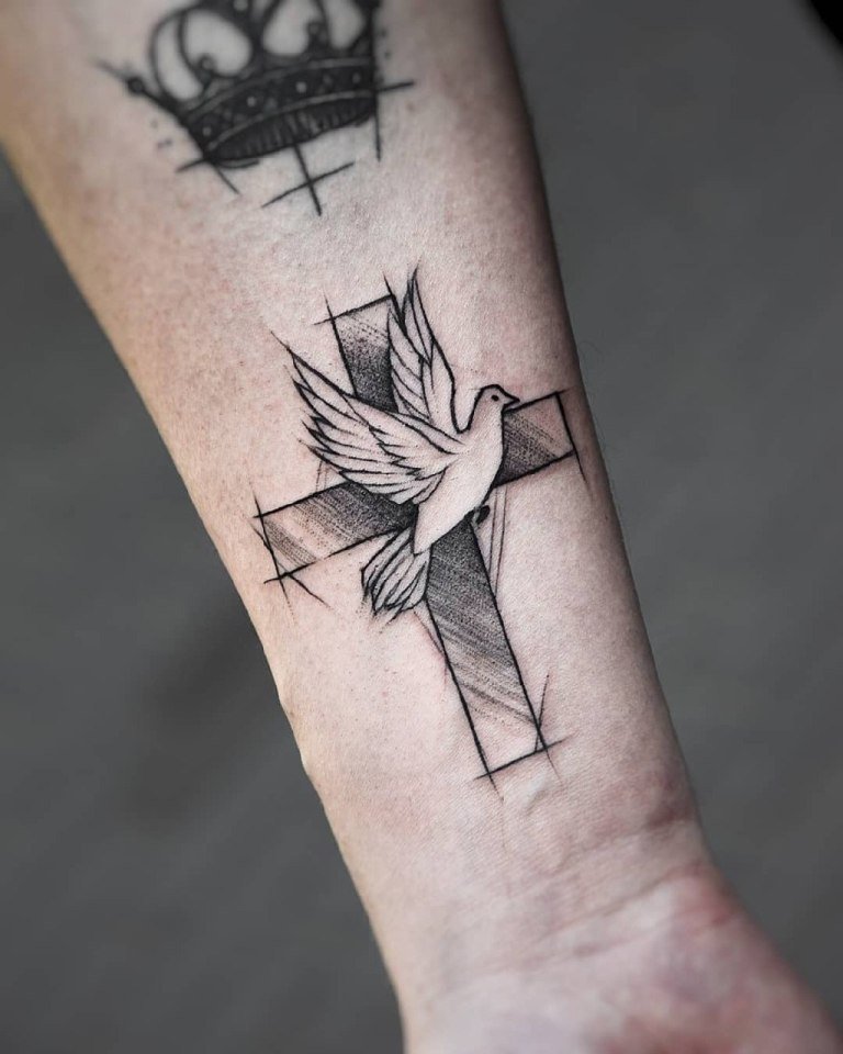 Ezért a galambot ábrázoló tetoválás többféle értelmezést hordoz. Általános szabály, hogy a galamb gyakran jó jelként és a kegyelem jeleként működik, ez a jelentés sok kultúrában ismert. Különösen népszerűek a galamb képével ellátott tetoválások a keresztény vallás országaiban, mert számukra a galamb tisztaságot és békét jelent, a Szentlélek megszemélyesítője.