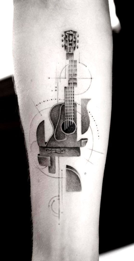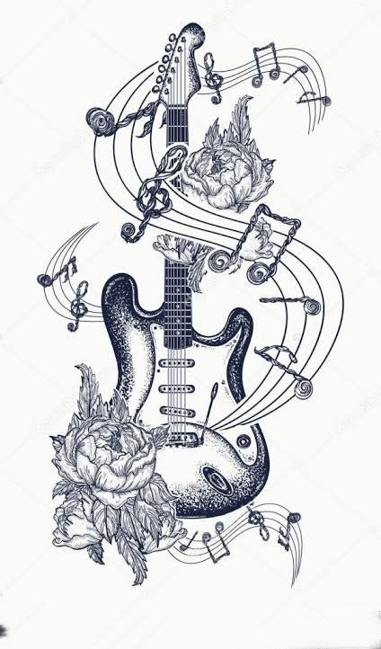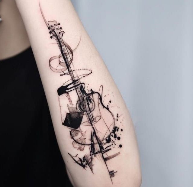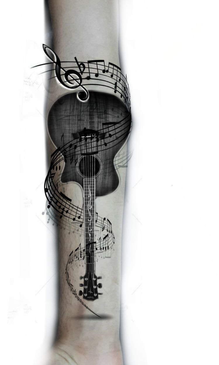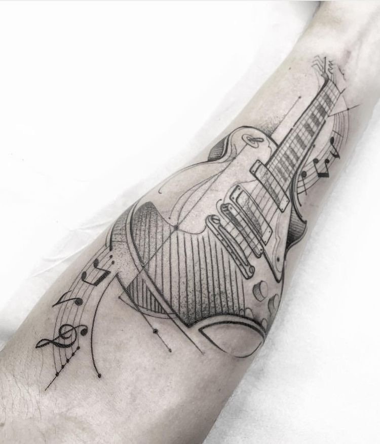 A tetoválások sok éve meglepték az embereket számukkal és stílusuk sokféleségével, mindenki választhat kedvére való vázlatot. A nagyon népszerű tetoválások a hangszerek, és különösen a gitár képei. Gyakran ez a tetoválás a zenészek karján, vállán vagy mellkasán található. Rendkívül ritkán látni gitárt lábon ábrázolva.