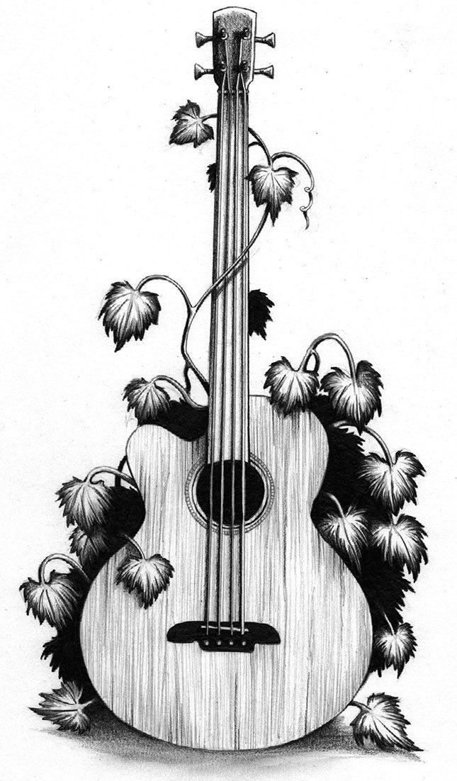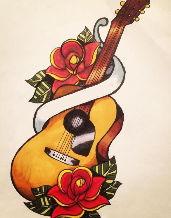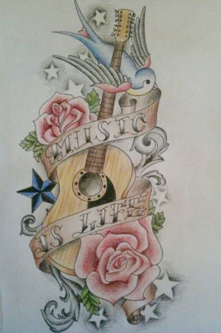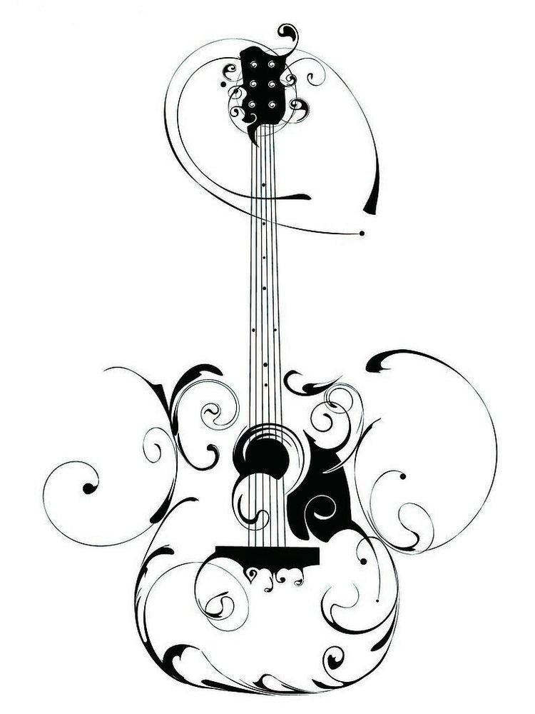 - Kreativitás. Van egy vélemény, hogy miután valaki alkalmazott egy gitár képet a testére, a kreatív múzsa mindig vele lesz. Sok zenész ragaszkodik ehhez a megnevezéshez, hisz abban, hogy a testen lévő rajz segít sikert elérni.