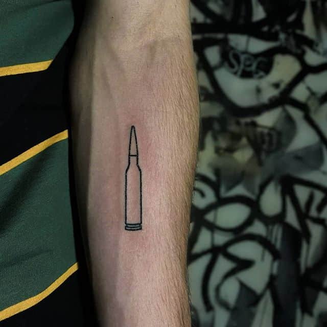 A golyót ábrázoló vázlat meglehetősen népszerű a katonai emberek körében. Ez a kép a tetoválás tulajdonosának a hadseregben szerzett tapasztalatait mutatja be, és a vitézség, a félelem nélküliség és a férfiasság jele. Ezenkívül egy katona számára a golyó tetoválás talizmánként működik, amely megvédi tulajdonosát az ellenséges támadásoktól. A golyó tetoválás azt is jelentheti, hogy egy személy lőtt sebet kapott.