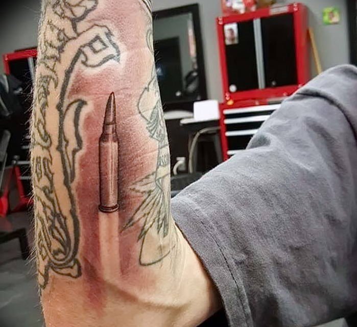 A rajz, amelyre nagy a kereslet, nem maga a golyó, hanem annak nyomai az emberi testen, amelyből vér folyik. Ezt a fajta tetoválást extrém emberek választják, akik szeretik felhívni a figyelmet és sokkolják a körülöttük lévőket.