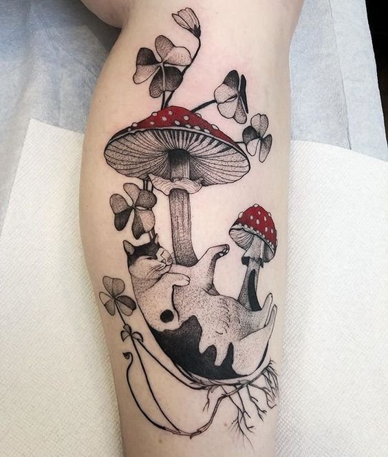 A bőrre átvitt gomba vázlatának szerencsével és jóléttel, kitartással és állhatatossággal is fel kell ruháznia tulajdonosát. Mindez lehetővé teszi, hogy komoly szimbólumként beszéljünk erről a növényről.
