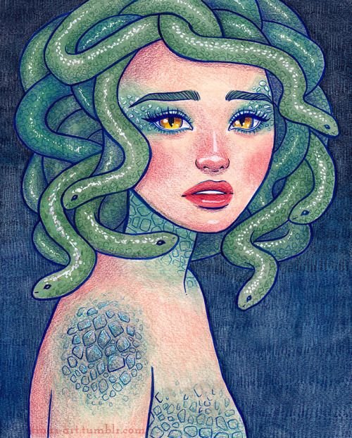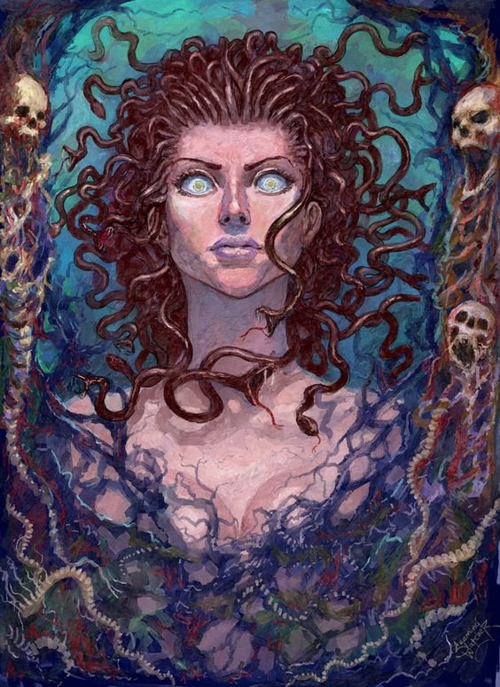 A mitológiából tudjuk, hogy a Gorgon Medusa egy szörnyeteg, amelynek haj helyett mérgező kígyója van. De ahogy a Gorgon legendája mondja, nem volt mindig szörnyeteg. A legenda szerint Keto és Phorky tengeri istenségeknek három lánya volt: Stheno, Euryale és Medusa. Mindhárom nővér a földöntúli szépség tulajdonosa volt. A három nővér egyike - Medusa, nagyon tetszett Poseidonnak, el akarta sajátítani a földöntúli szépséget. Medúza azonban megtagadta a tengerek urát, és Poszeidón a szépség akarata ellenére birtokba vette őt Athéné templomában. Athena hihetetlenül dühös volt, és mivel Medúzát bűnösnek tartotta ebben az incidensben, szörnyű szörnyeteggé változtatta őt és nővéreit. A lányok a szépségekből szörnyű lényekké változtak: pikkelyek borították őket, sárga agyarok nőttek, kezükön szögek helyett acélkarmok, hajuk kígyóvá változott. De a legnagyobb büntetés a tekintet volt, ami mindenkit kővé változtatott, aki rájuk nézett. Azóta a Gorgon sok lelket megölt, amíg Perszeusz legyőzte.