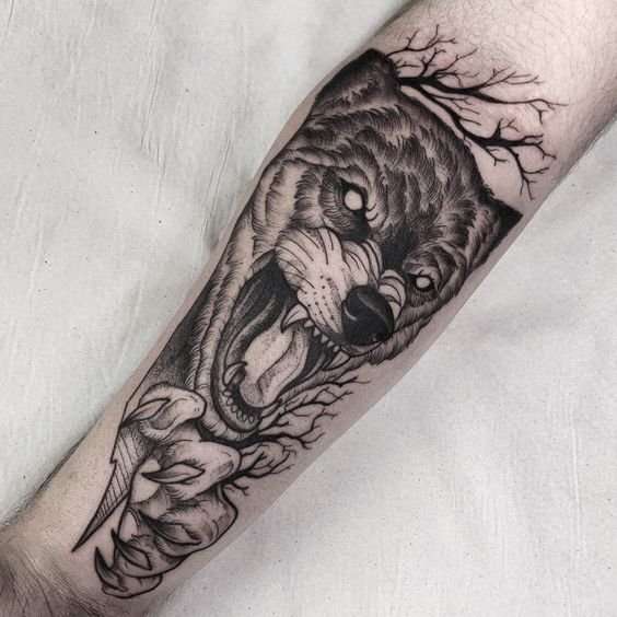A férfiak pedig a brutálisabb képeket választják. Ezek lehetnek például vadon élő állatok képei, például: farkas, medve, oroszlán stb. Az ilyen tetoválások hangsúlyozzák tulajdonosának erejét, férfiasságát és bátorságát.