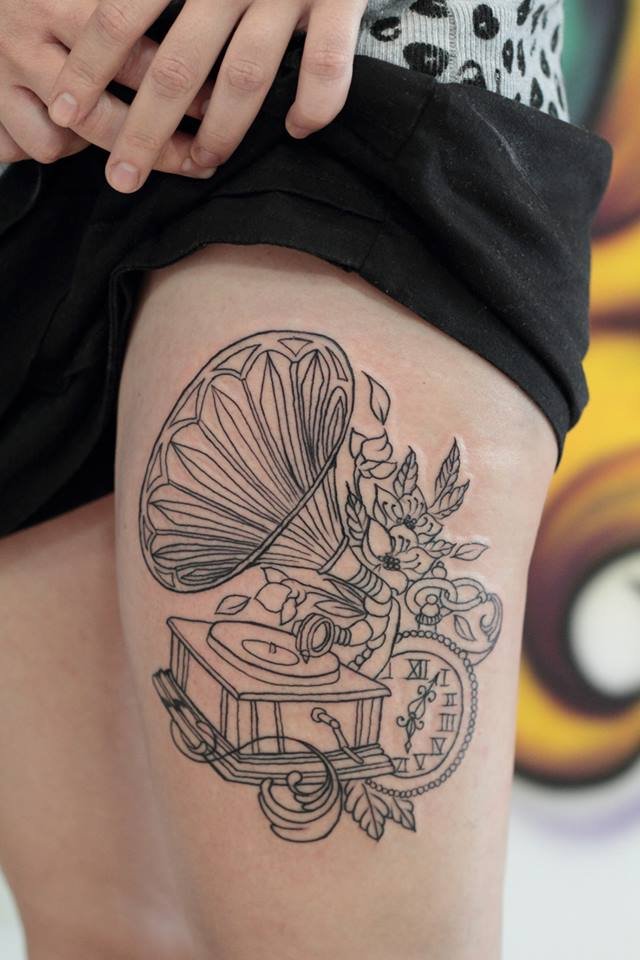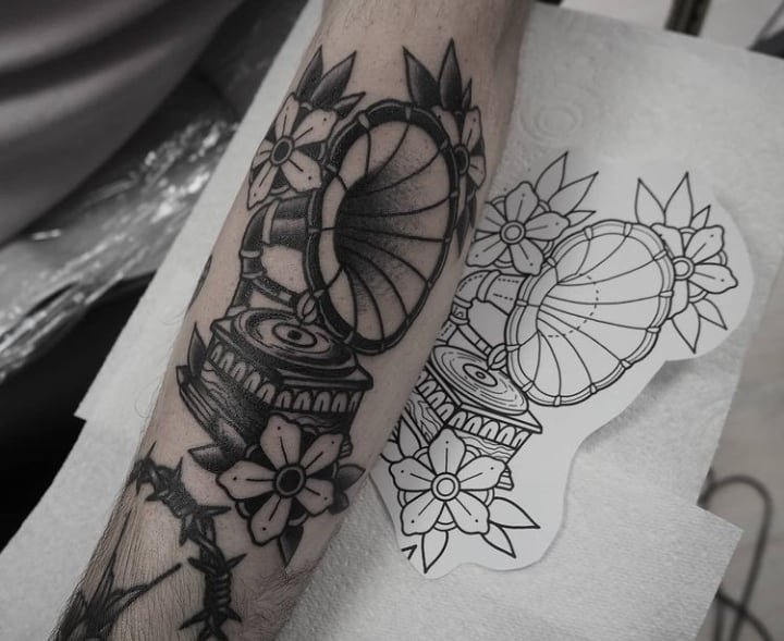 Gramofon tetoválási vázlat