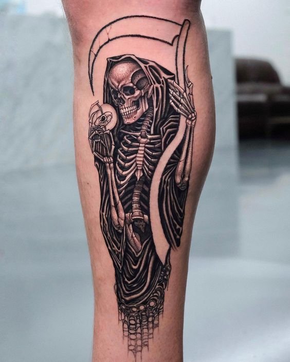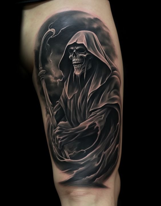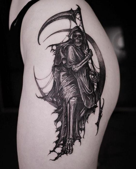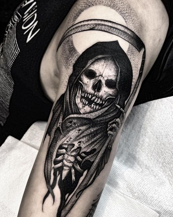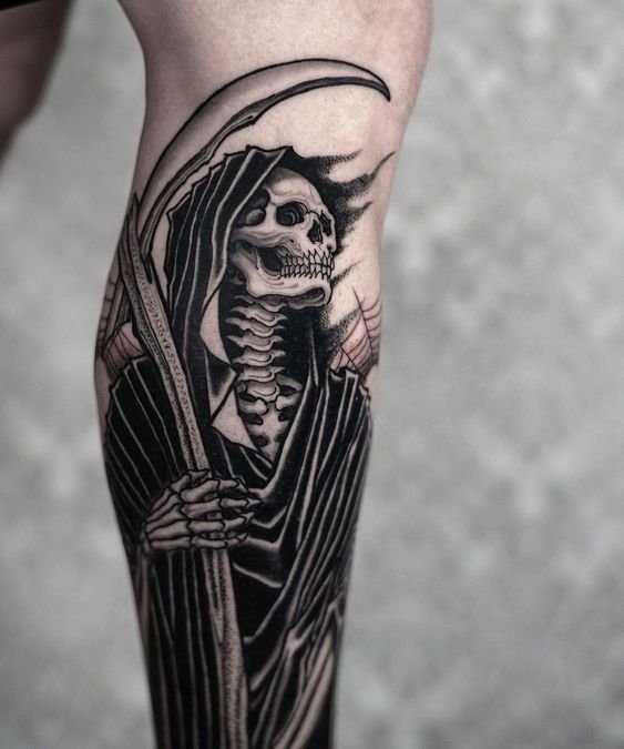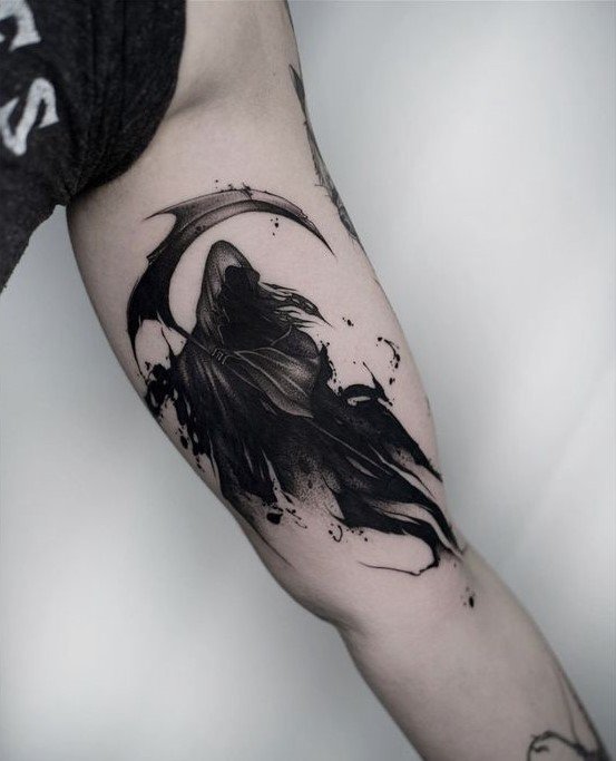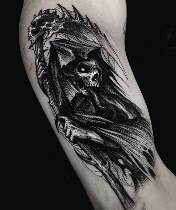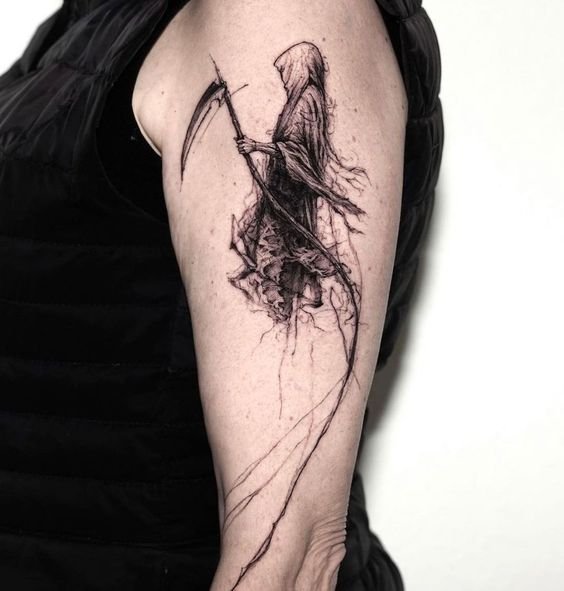 A művészi tetoválások területén nagy kereslet mutatkozik a „halál kaszával” készült vázlatokra.