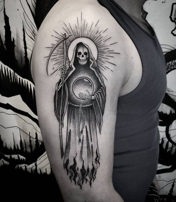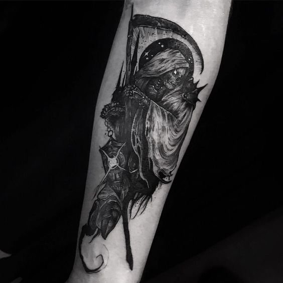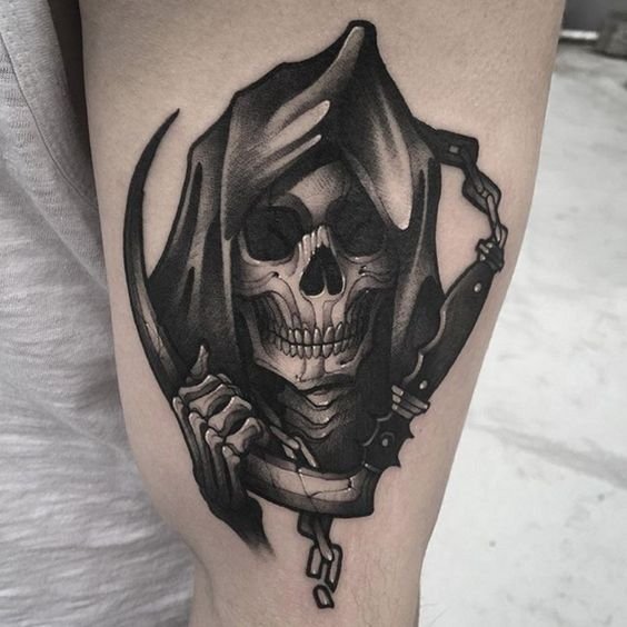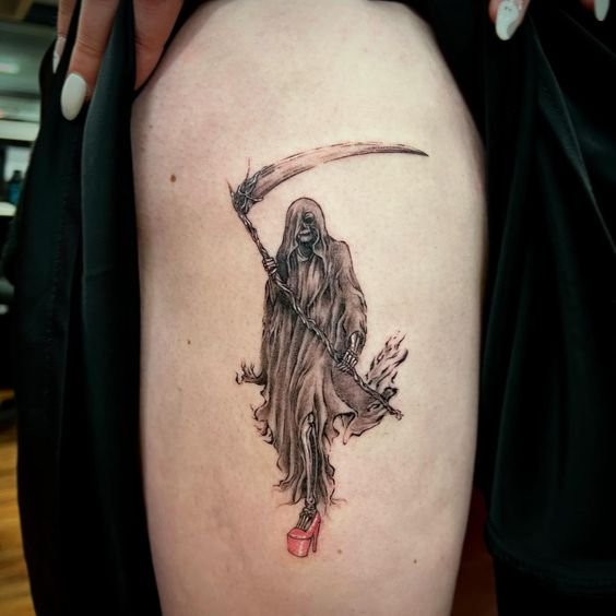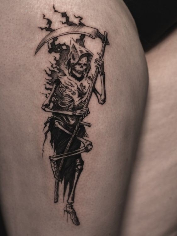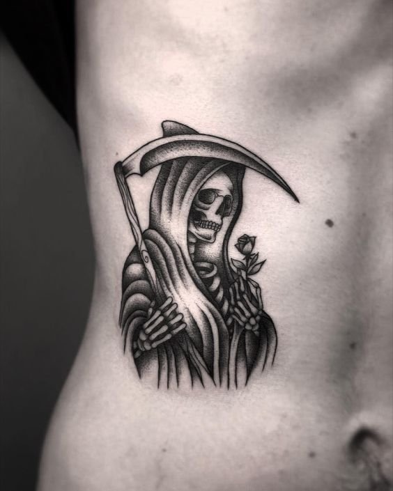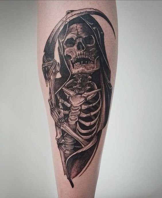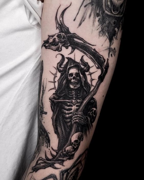 A művészi tetoválások területén nagy kereslet mutatkozik a „halál kaszával” készült vázlatokra.
