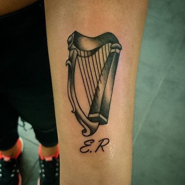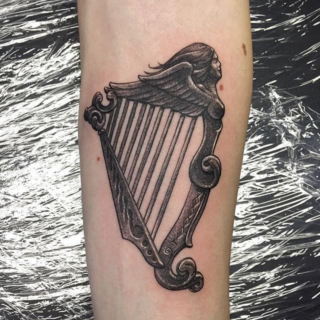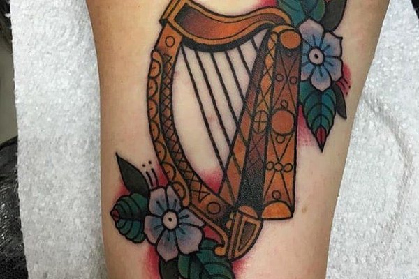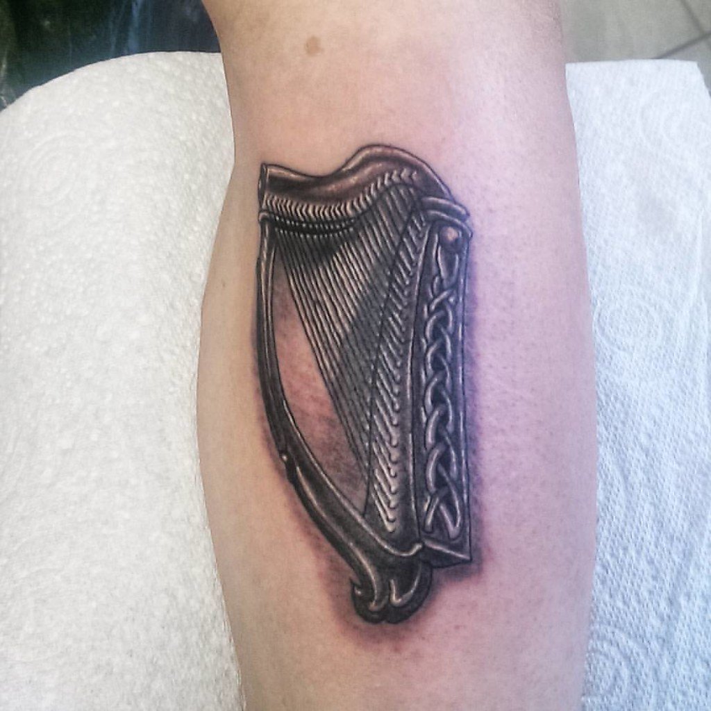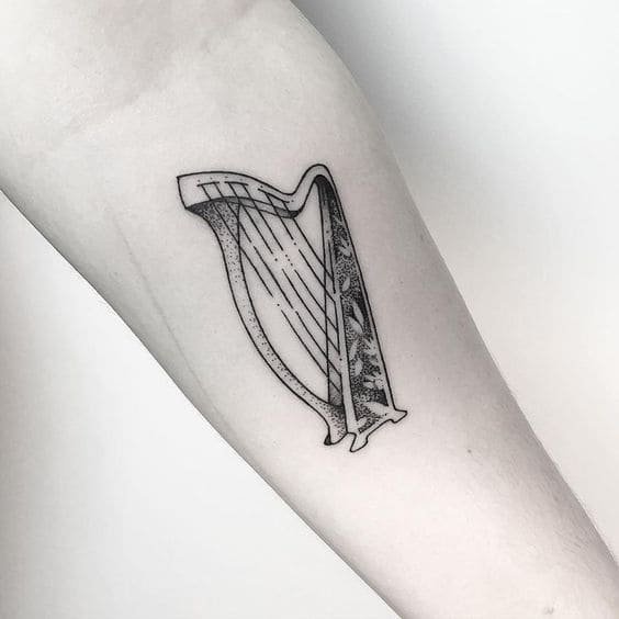 Egy hárfáról készült mintán azonnal meglátszik a kifinomultság és eleganciája munkája. A tetoválás a lehető legkifinomultabban is elkészíthető, hogy kihangsúlyozza a szándékot.