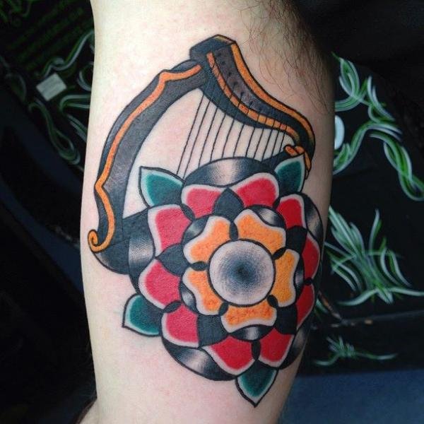 A hárfa tetoválás színe abszolút bármilyen lehet.