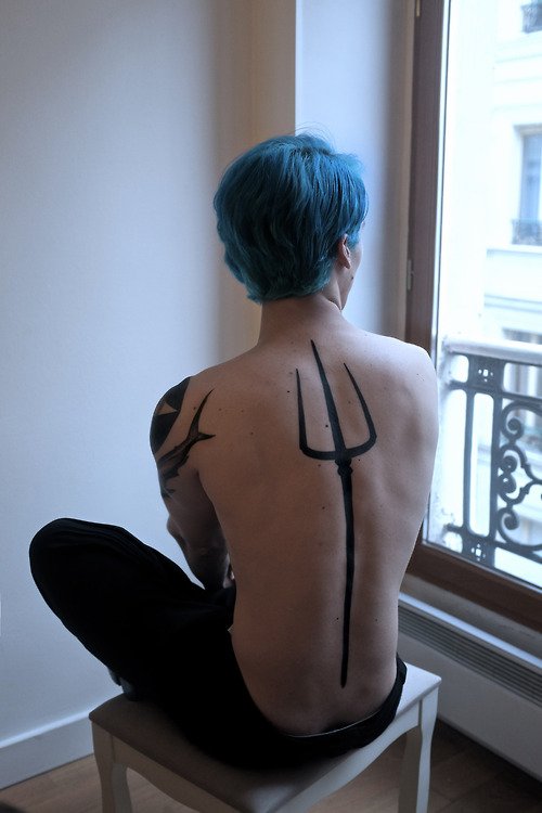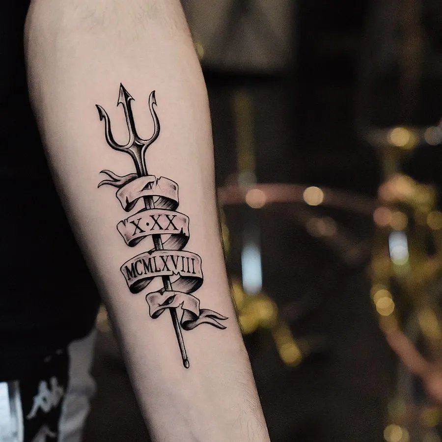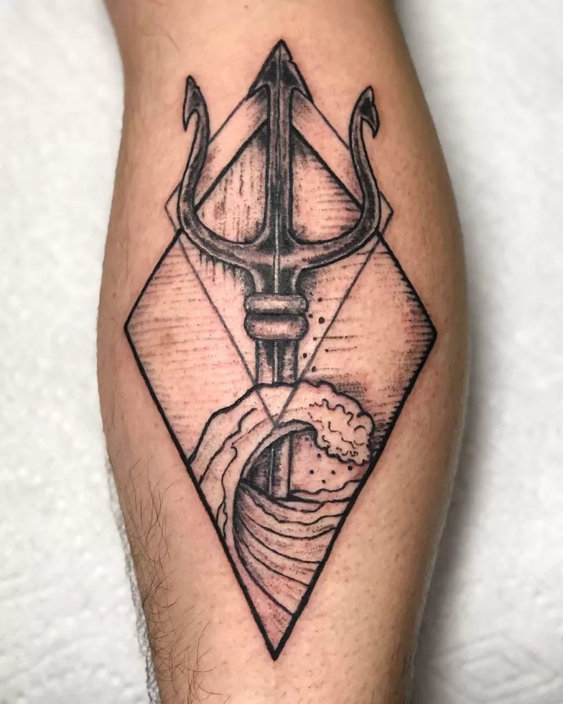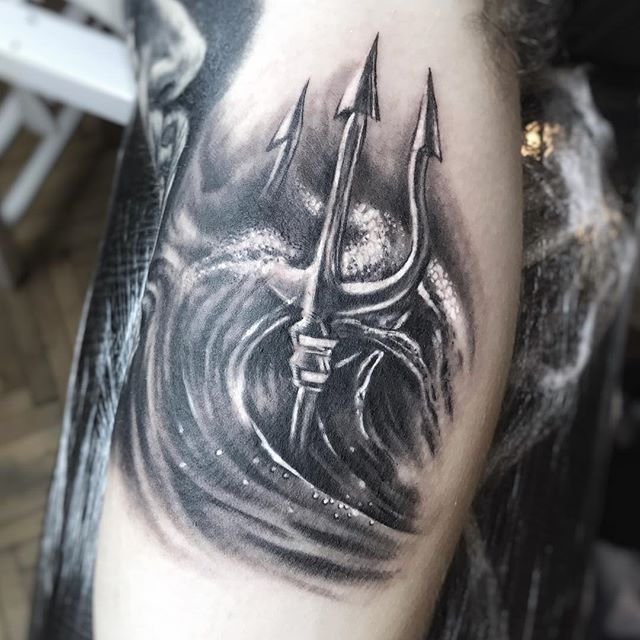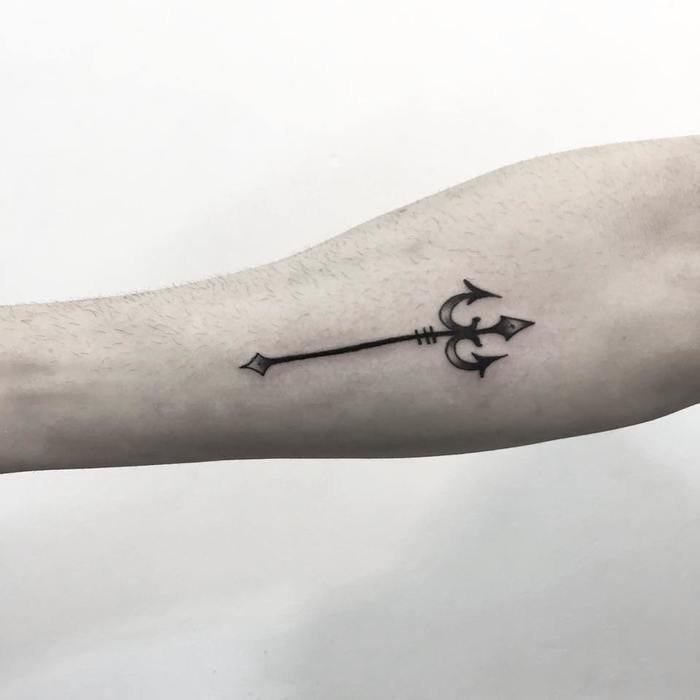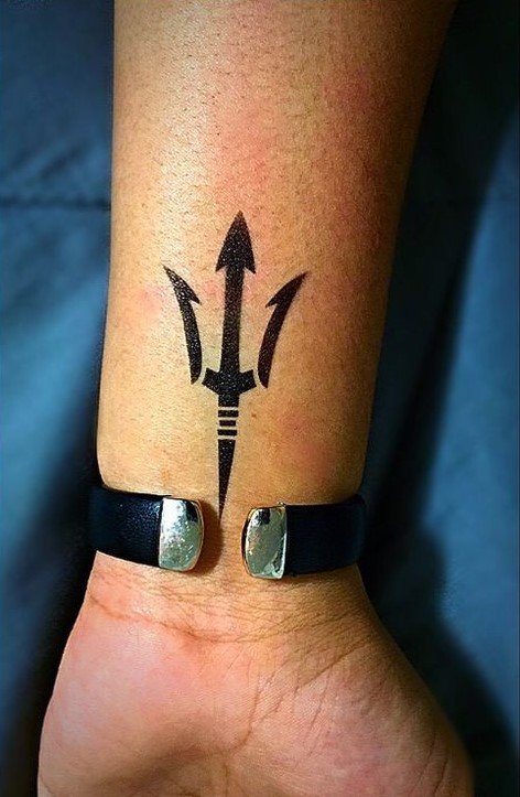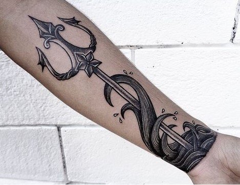 A háromágú szigony tetoválás jól mutat a test bármely részén. A férfi tetoválások általában nagy méretűek, és a háton, a mellkason, az alkaron és a vállon helyezkednek el