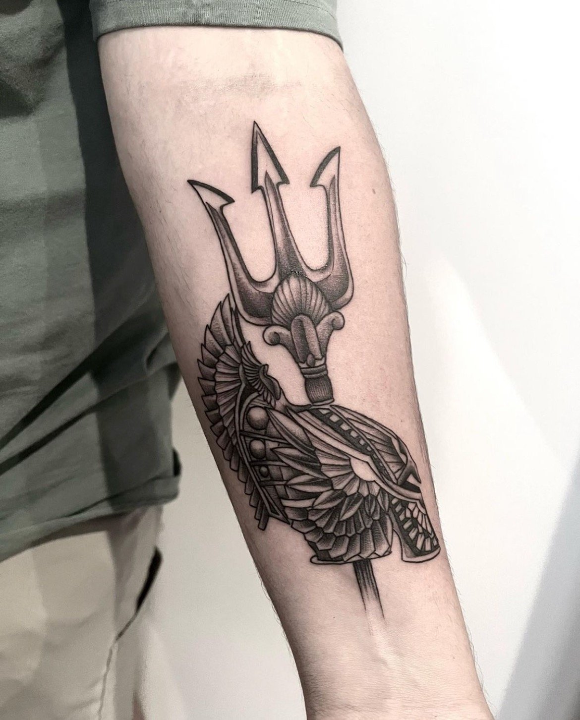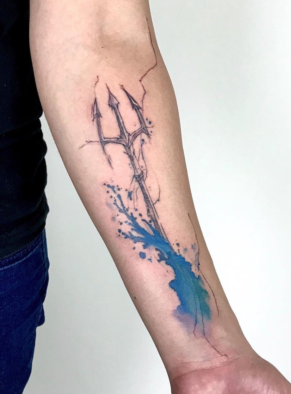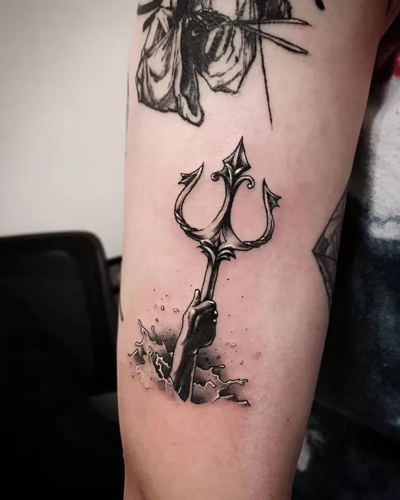A háromágú szigony tetoválás jól mutat a test bármely részén. A férfi tetoválások általában nagy méretűek, és a háton, a mellkason, az alkaron és a vállon helyezkednek el