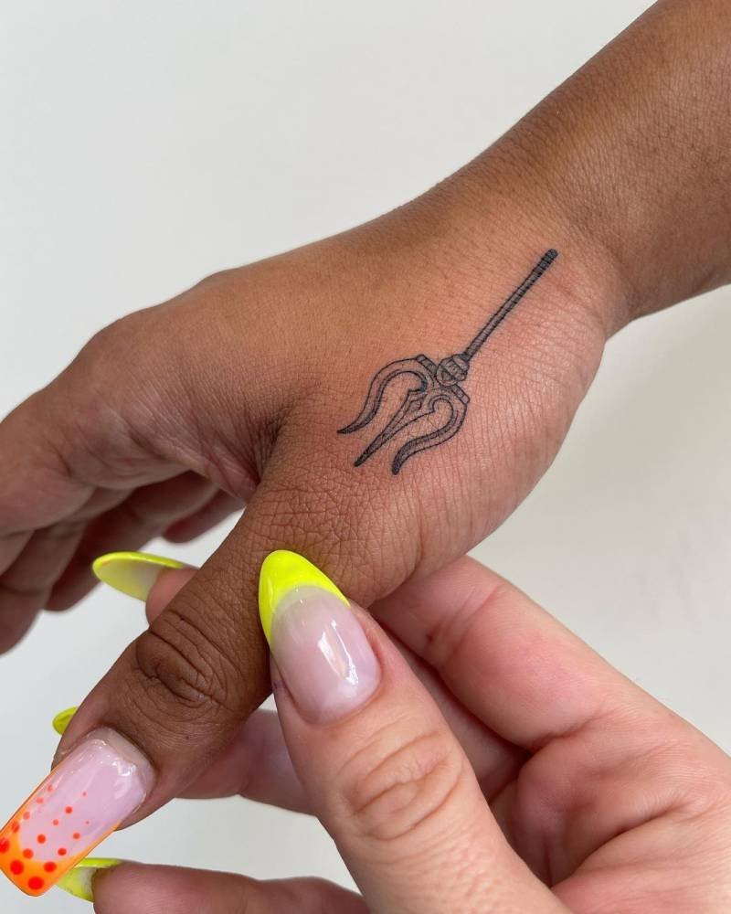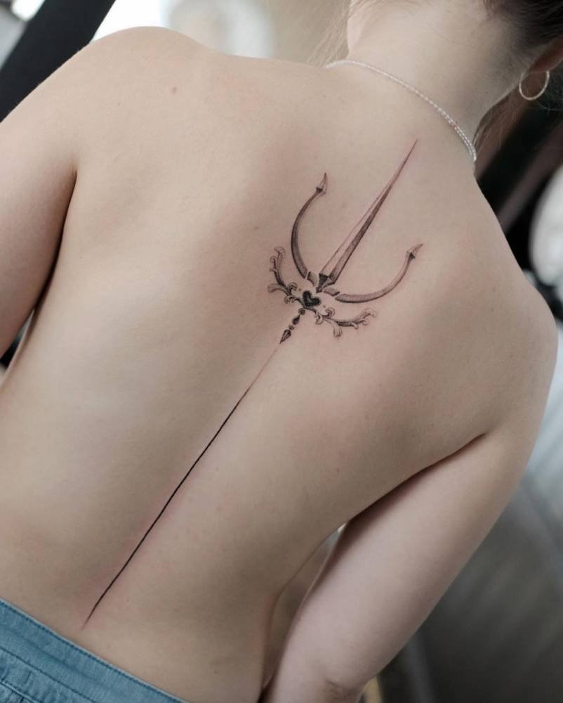 A számos testdizájn egyike a háromágú szigony kép, amelyre nagy a kereslet a tetoválás kedvelői körében. Az ilyen testkép bátor, határozott emberként írja le az embert, akinek erős jelleme van, és nem enged az irányíthatatlan gyengeségeknek.