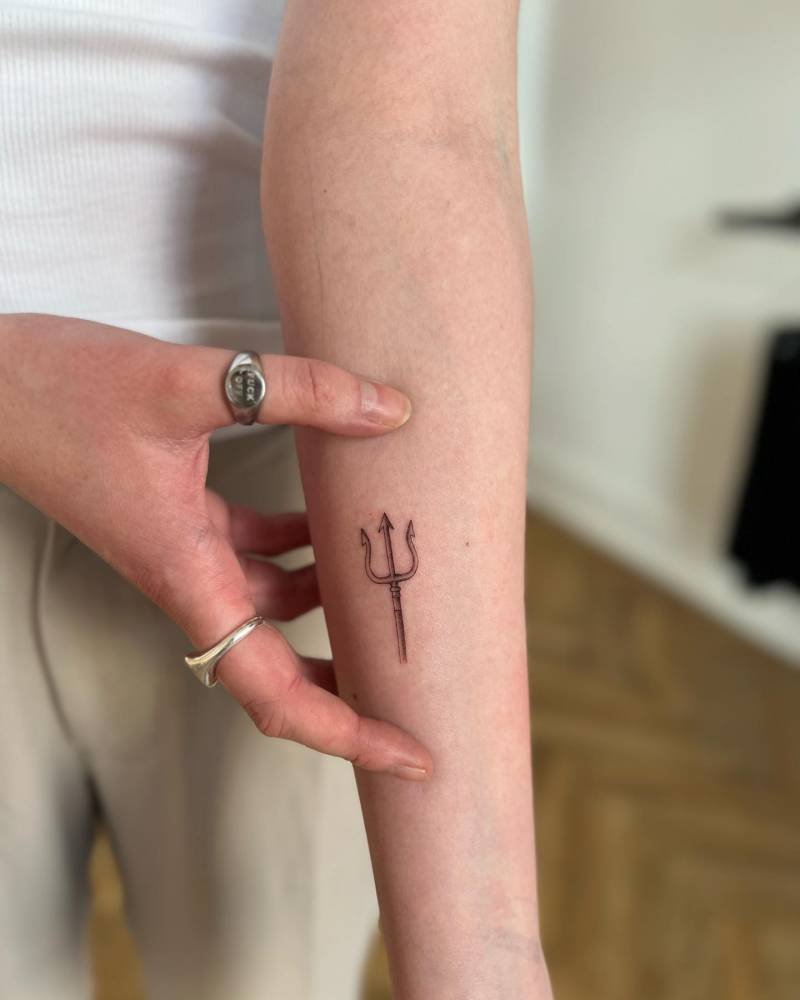 A testkép tulajdonosának meg kell egyeznie a rajzzal. Ez a szimbólum a bátorságot és az erőt személyesíti meg, emellett az istenek fegyvereinek jele. Ezért függetlenül attól, hogy milyen további elemekkel van tele a tetoválás, a háromágú csúcsai mindig fenyegető megjelenést kölcsönöznek. A háromágú szigony népszerű a férfiak és a nők körében. Ezenkívül egy ilyen tetoválás a lány testén szimbolizálja a tulajdonos belső erejét, kitartó karakterét, elszántságát és pozitív energiáját.