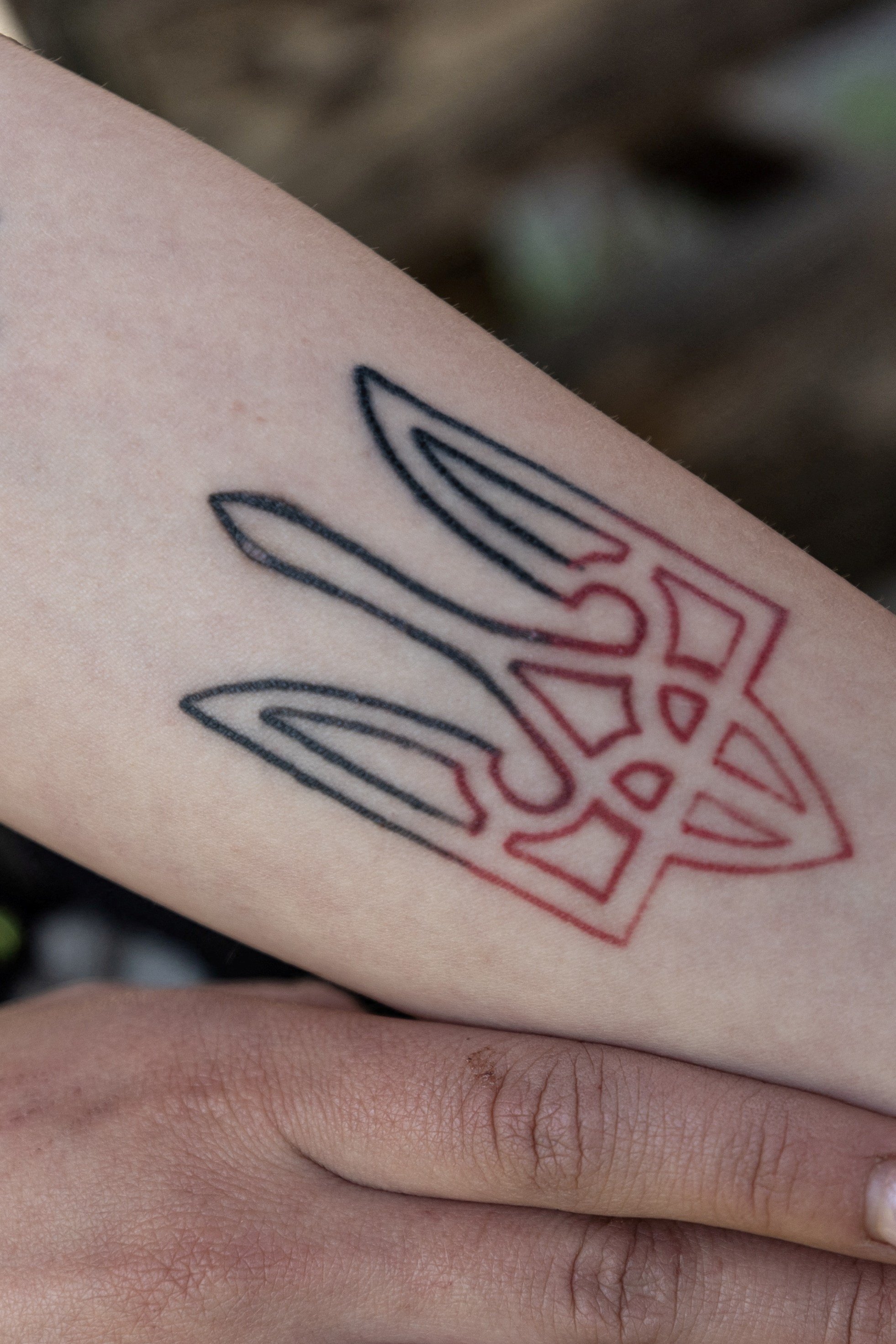 Fontos, hogy ne feledkezzünk meg a háromágú szigony legszembetűnőbb és legelterjedtebb képéről, amely Ukrajna címere. Egy ilyen kép az ember testén a hazája iránti szeretetét, a szabadság, a barátság és a jóság iránti szeretetét jelzi.