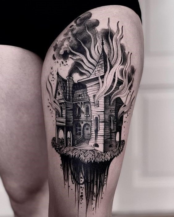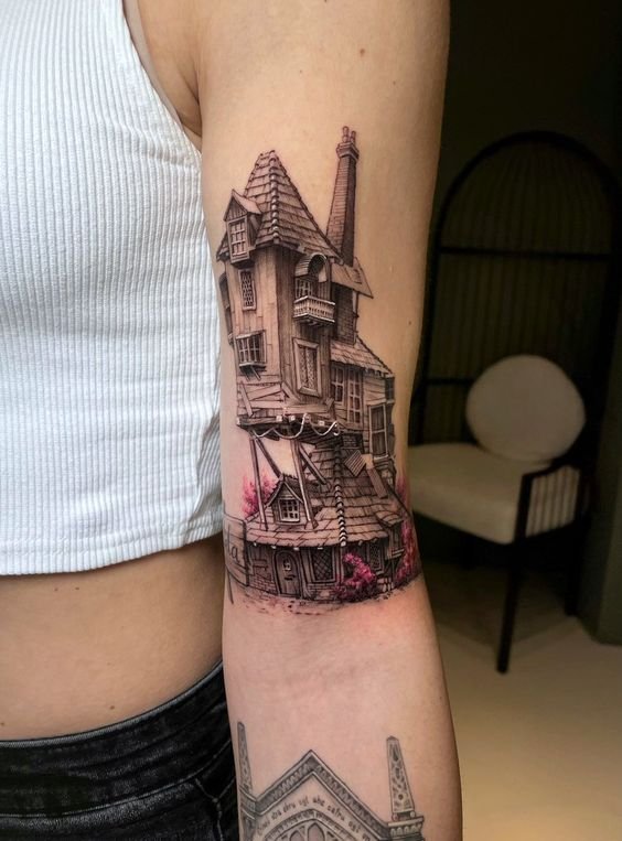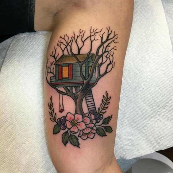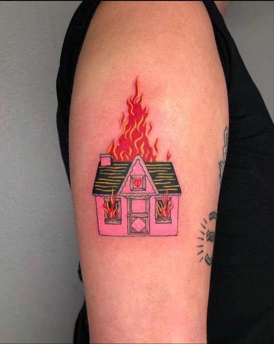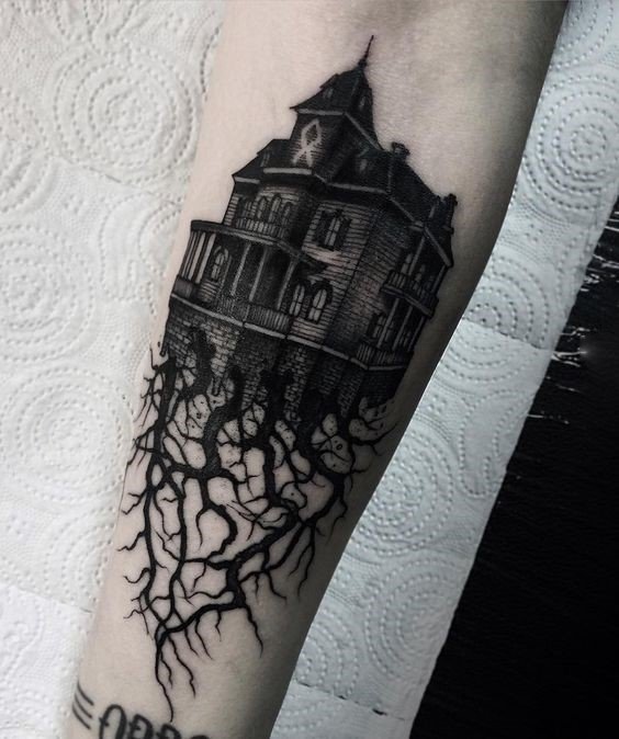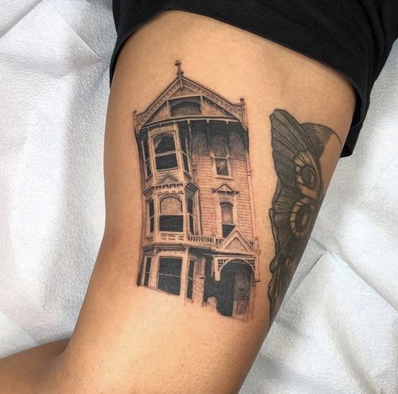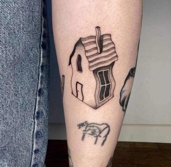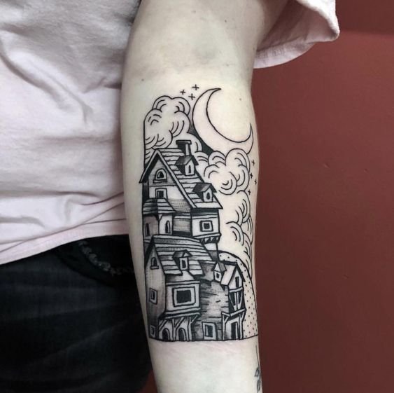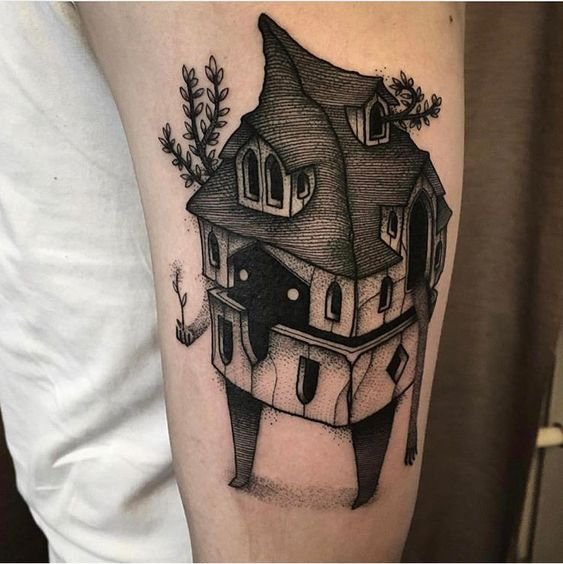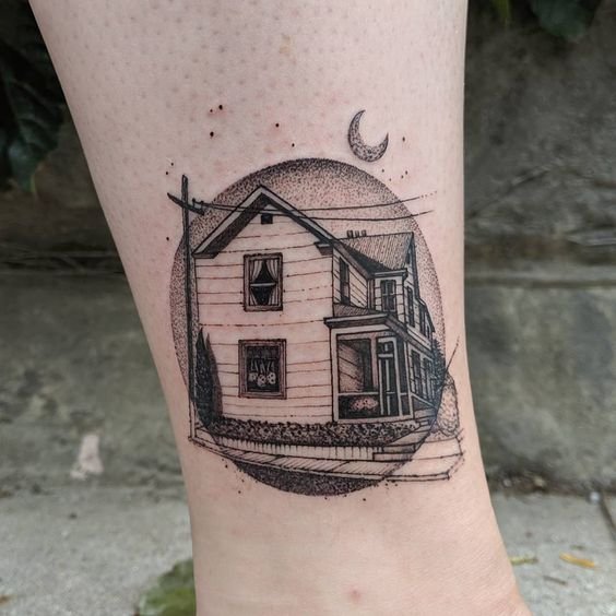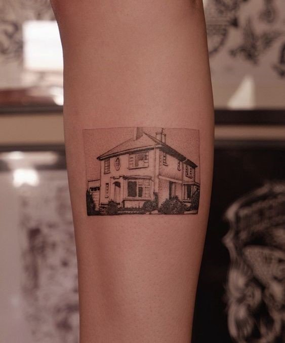 A házzal ellátott tetoválás azt is jelezheti, hogy az ember ragaszkodik az életmódjához, miközben szereti a kényelmet és a nyugalmat. A munkát a ház lakói végezhetik, szívnek kedves szavakkal feliratokkal. A színek lehetnek lágyak és telítettek és világosak is. A ház közelében lévő kerítés is jelzi a biztonságot és a vágyat, hogy megvédje magát a világ környező zajától.