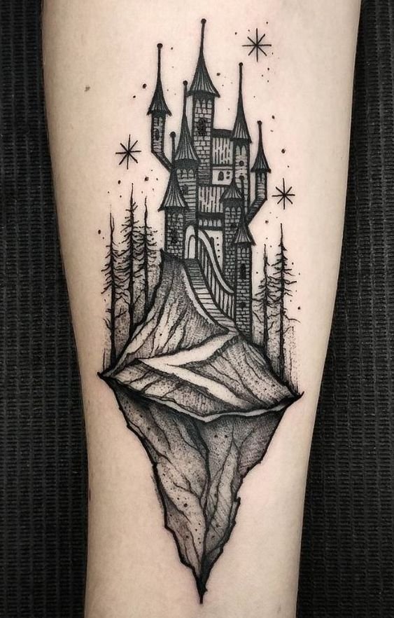 A kastélyos tetoválás titokzatos és rendkívüli személyként beszél tulajdonosáról. Az ilyen ember több éves kommunikáció után is tud meglepetést okozni, érdekes és kicsit titkolózó is tud lenni. Ennek ellenére a kastély ugyanazt a kényelmet és védelmet fogja hordozni. Kőfalai nem engedik be a problémákat a rokonok, barátok életébe, az épület nagyképűsége pedig több mint egy évig felkelti a mű tulajdonosa körüli emberek figyelmét.