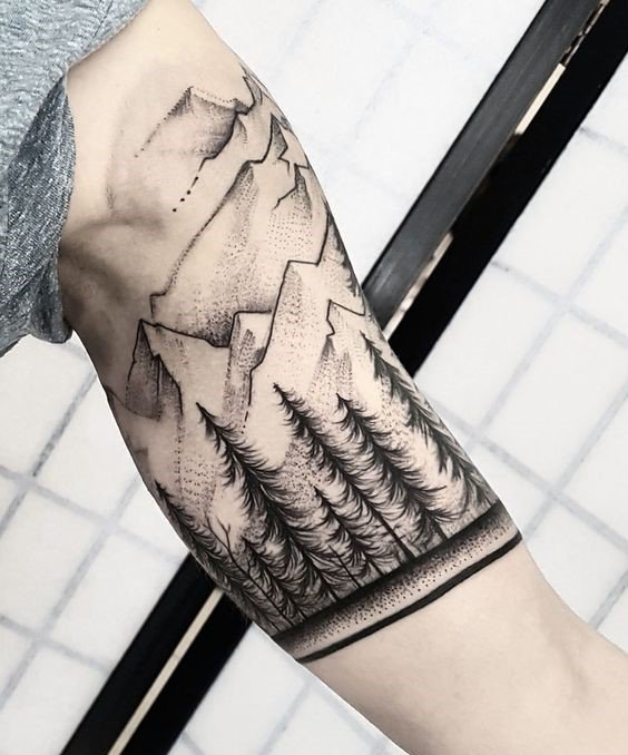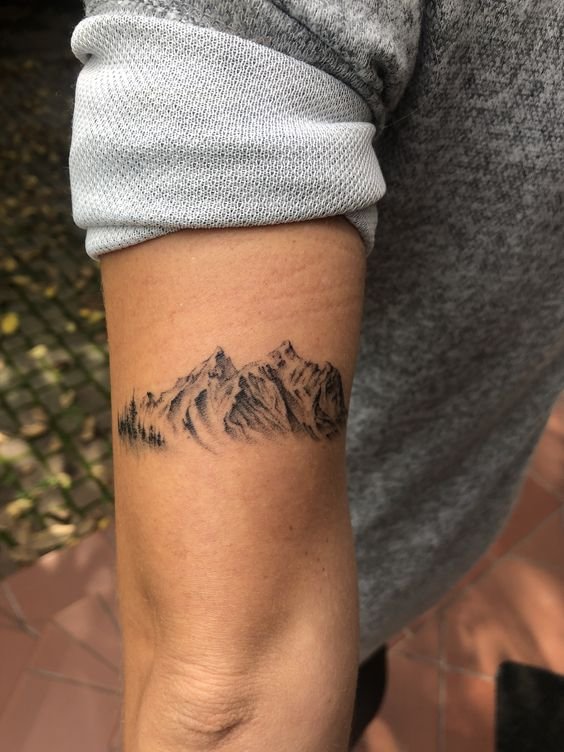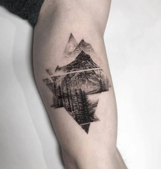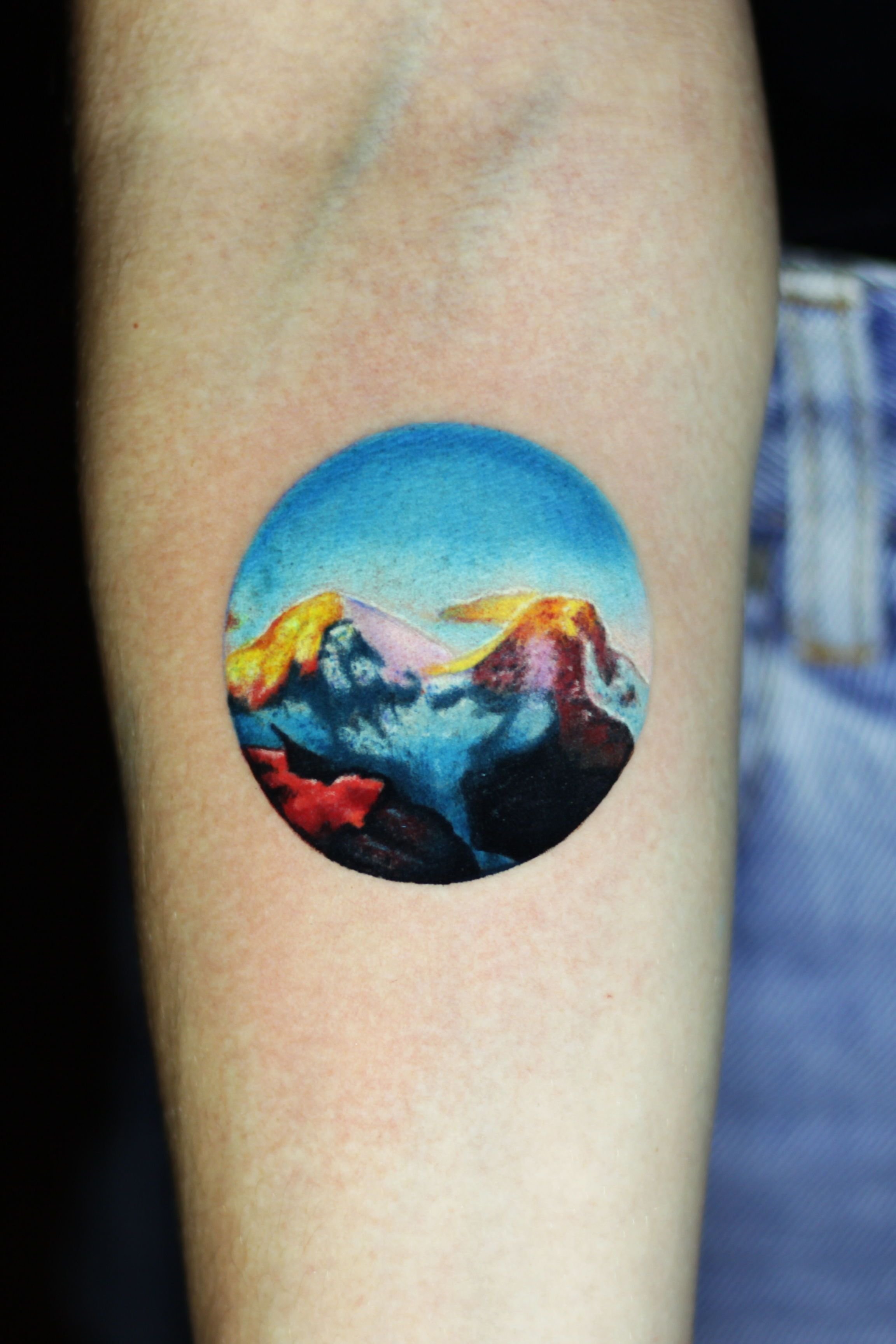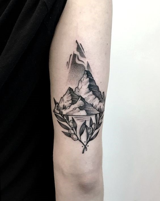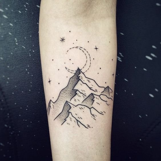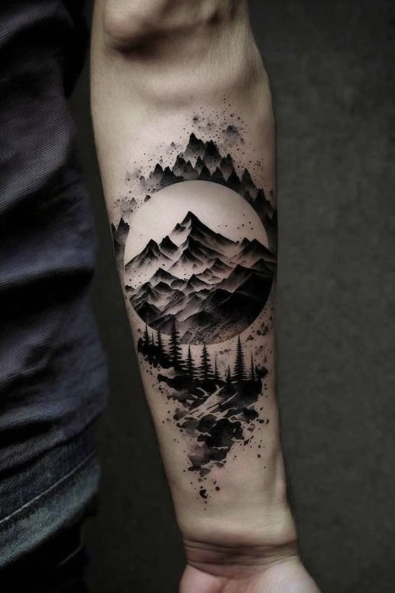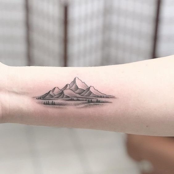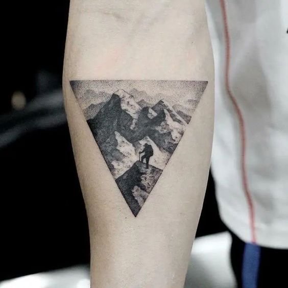 A hegyeket ábrázoló tetoválások sokféle stílusban és színben jól néznek ki.
