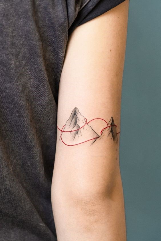 - Magasságra, szabadságra való törekvés. Ez az értelmezés a hegycsúcsok képéhez kapcsolódik. Egy ilyen tetováláshoz gyakran a Himalája vagy az Alpok csúcsait választják.